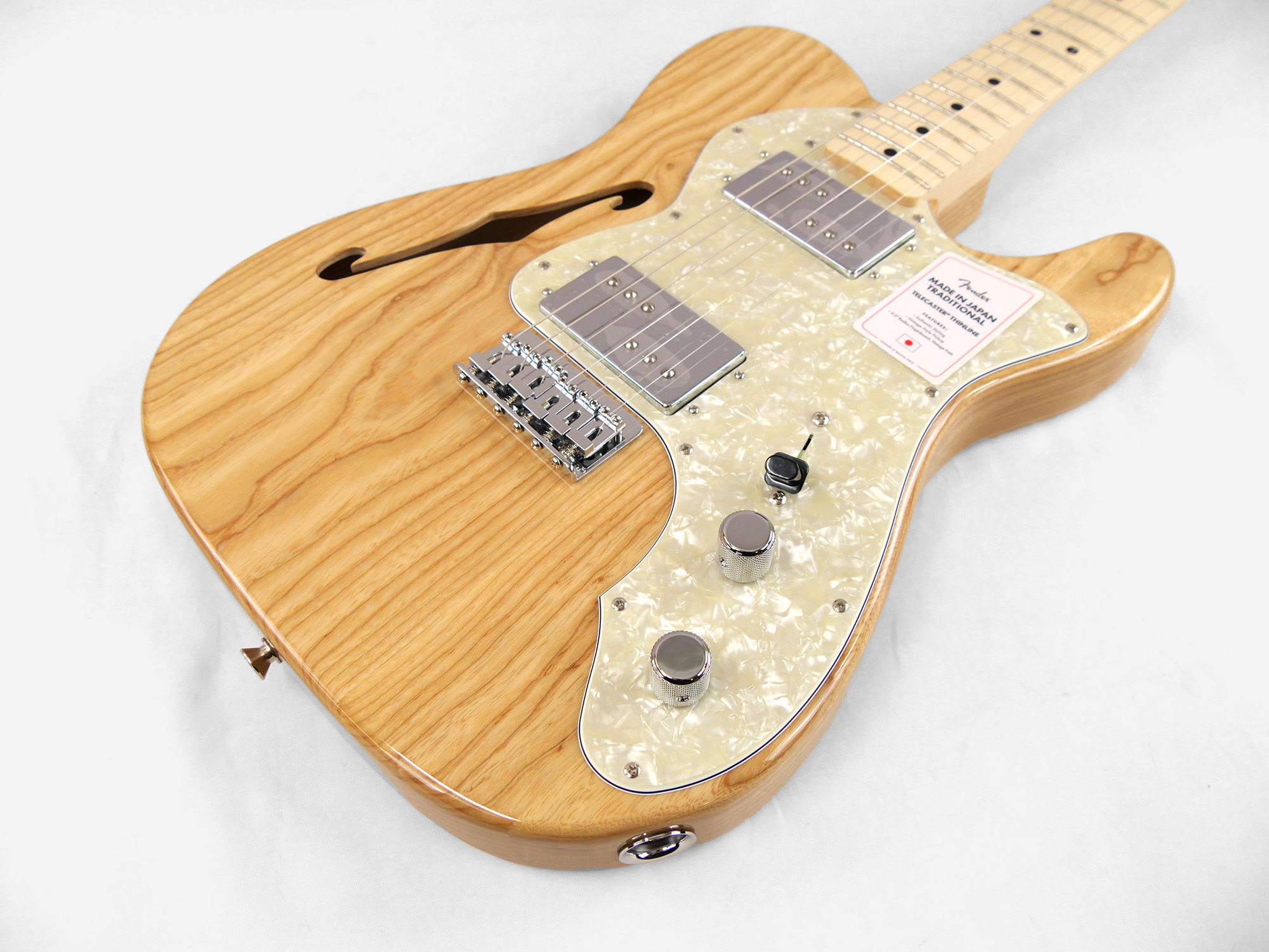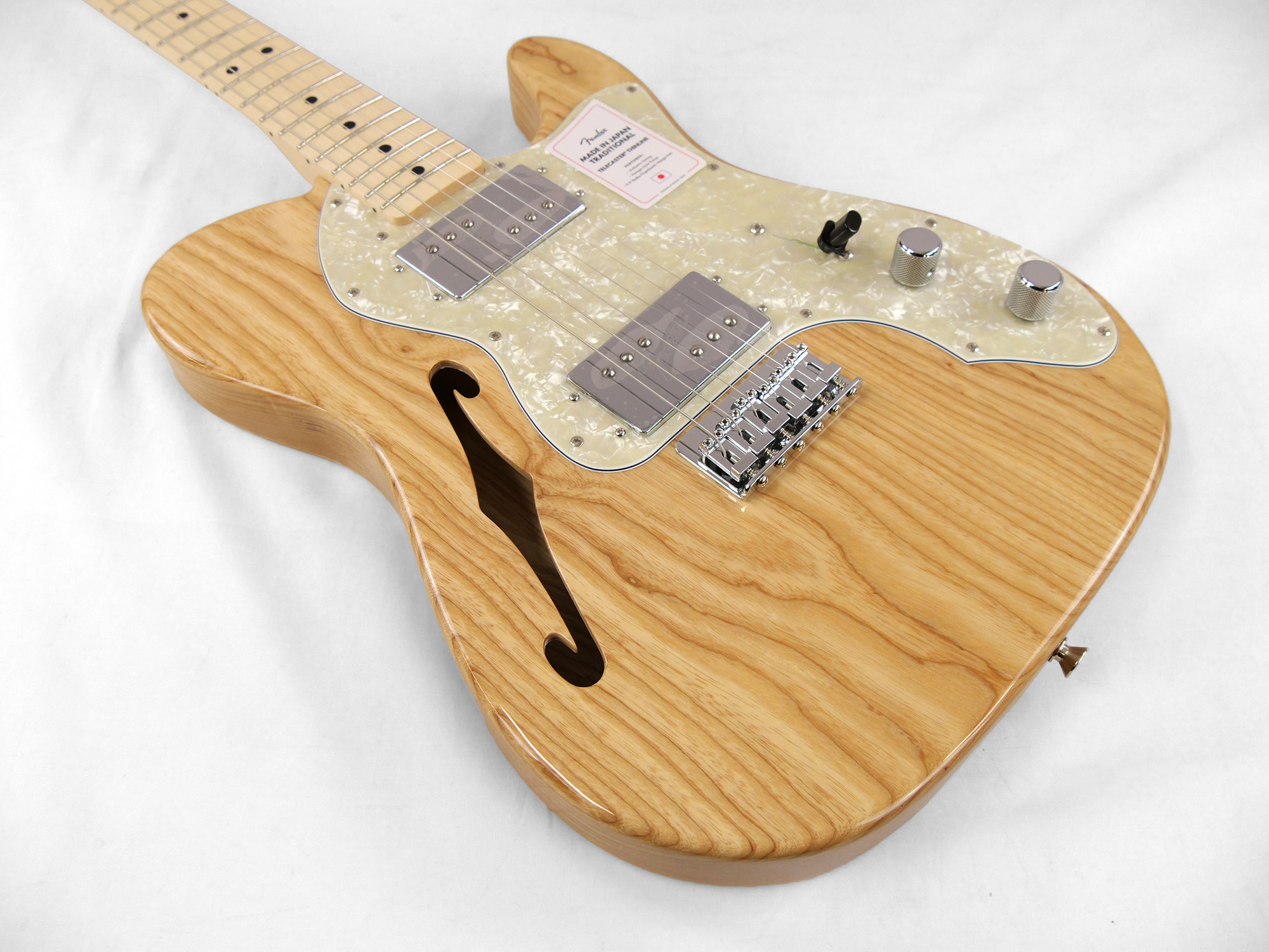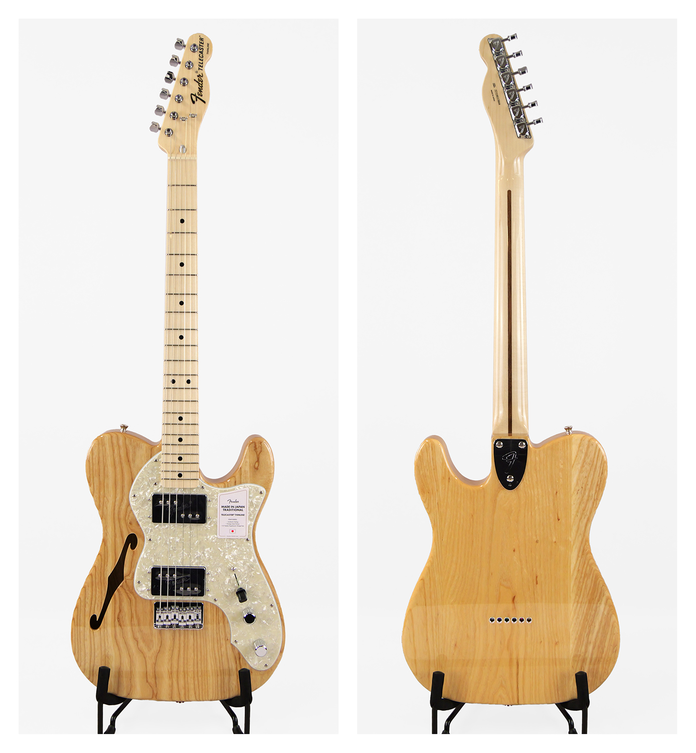 Made in Japan Traditional 70s Telecaster® Thinlineはグロスフィニッシュのアッシュボディを採用。21本のヴィンテージスタイルフレットを装備した9.5インチラジアスの”U”シェイプメイプルネックがTraditionalシリ ーズならではのクラシカルな演奏製を提供します。6サドル式String-Through-Bodyハードテイルブリッジ、そしてTraditionalシリーズのために選定されたオリジナルピックアップはリアルで音楽的なヴィンテージトーンを奏でます。細めに設計されたナット幅は日本のプレイヤーにも弾きやすい仕様となっています。堅実なギタークラフトマンシップと、プレイヤーのニーズに柔軟に対応する答えが、本シリーズに反映されています。