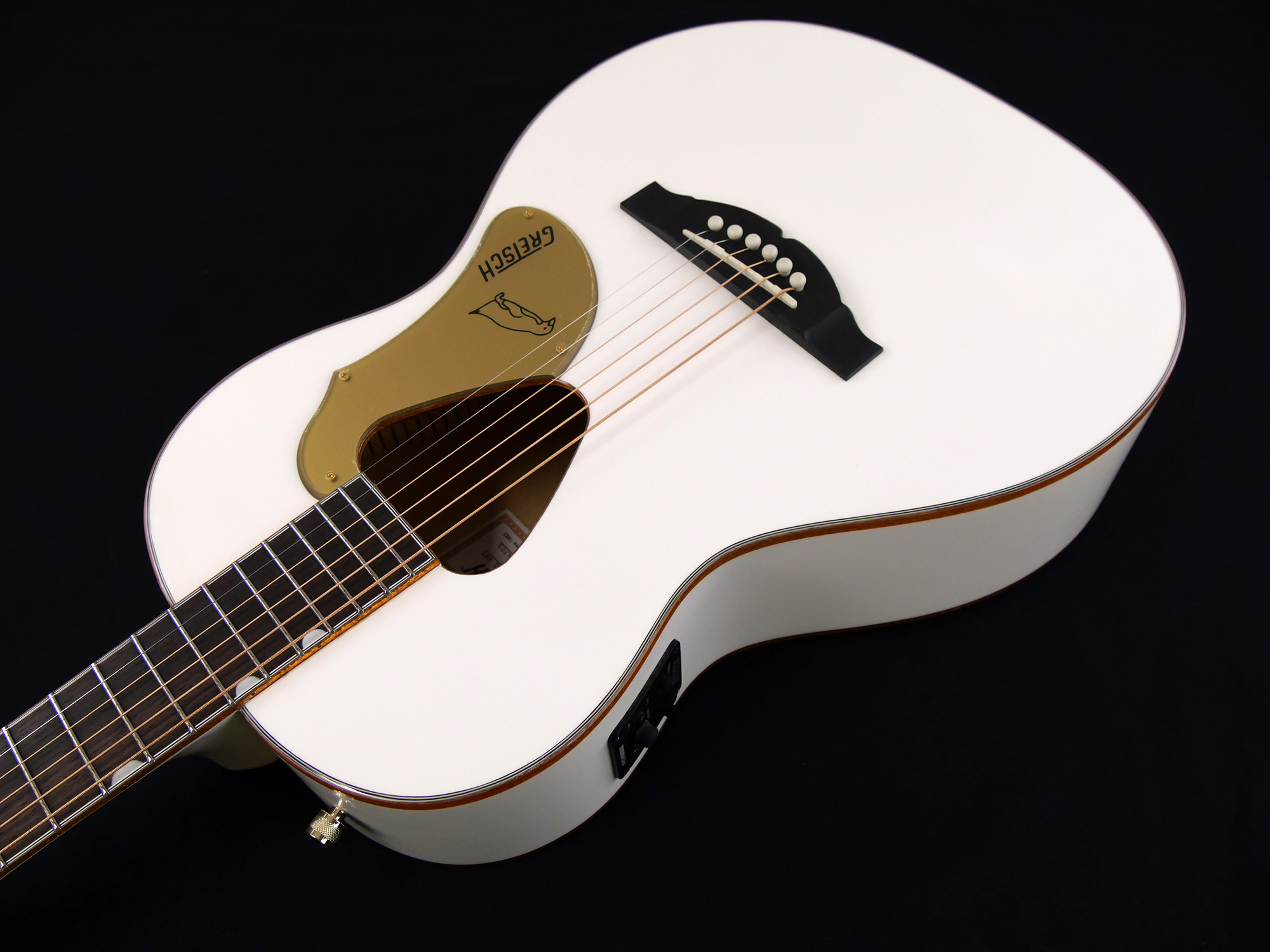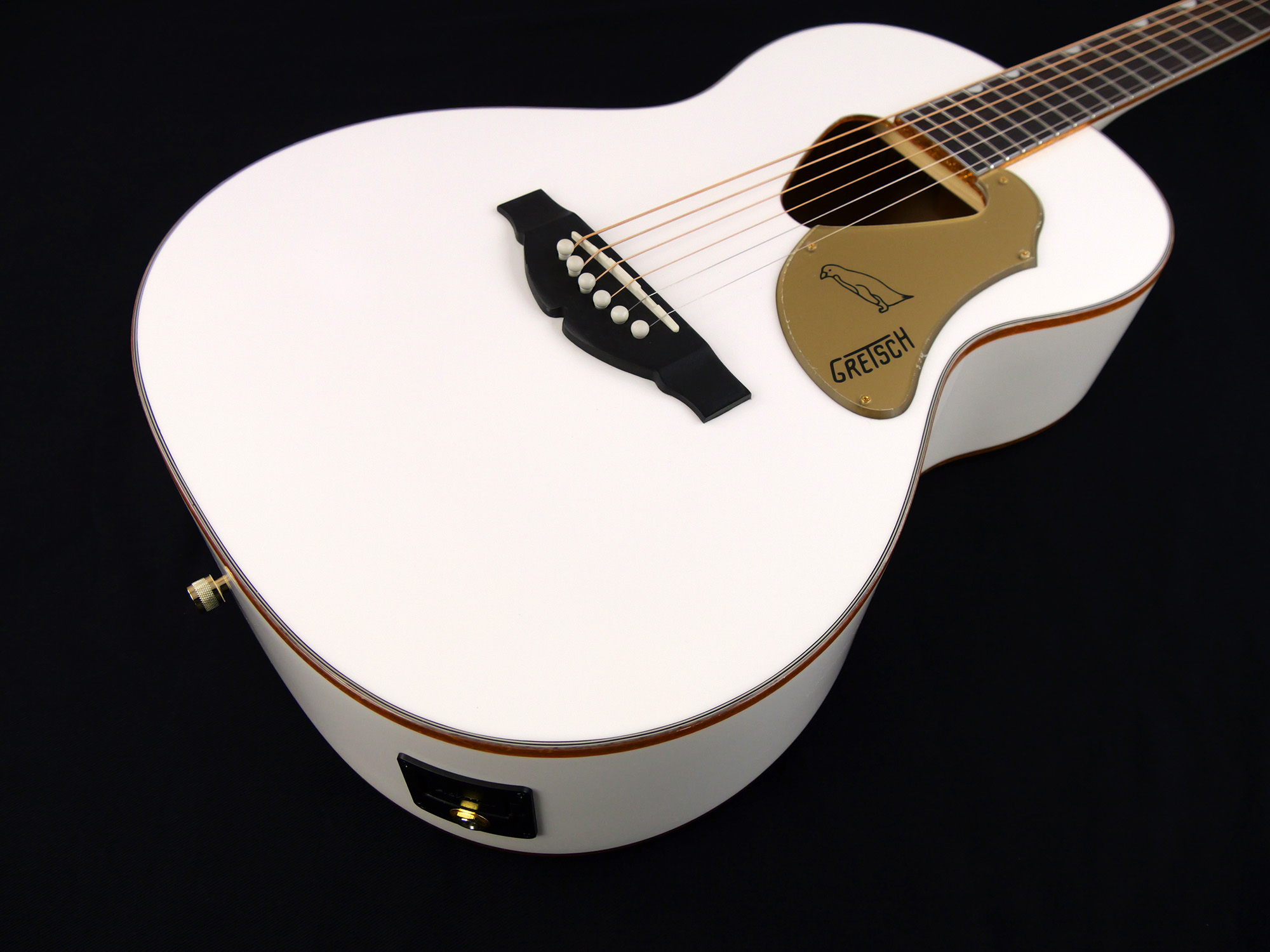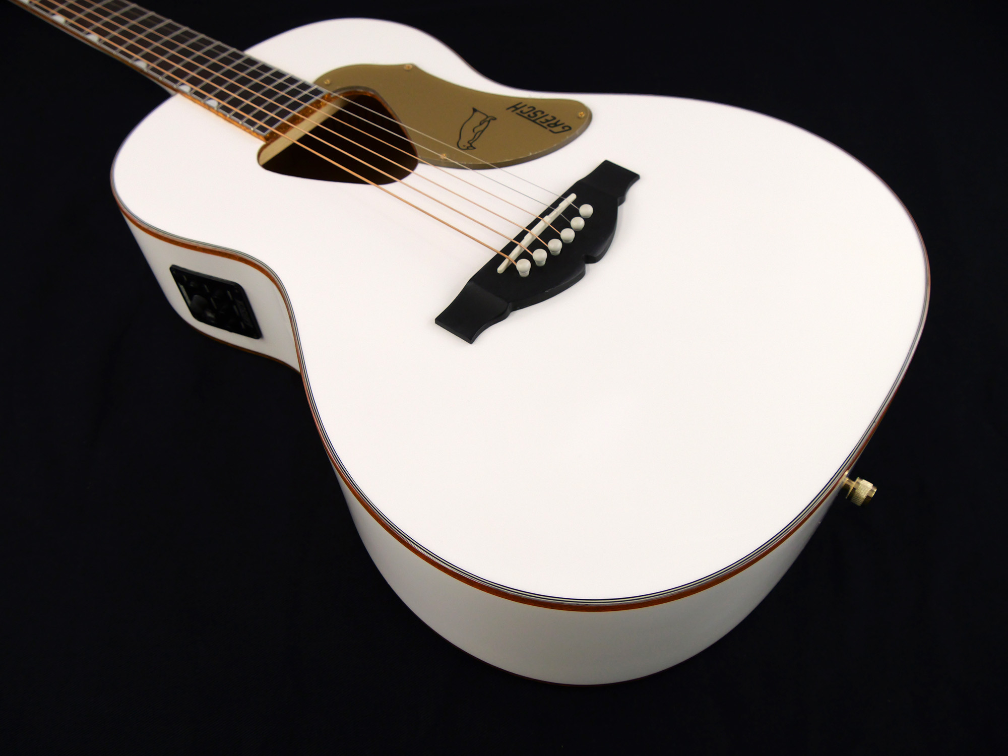 Fishman Isys III PU/オンボード・プリアンプシステムは、現代的なサウンドを加えます。ソリッドスプルース・トップ、メイプル・バック&サイドを使用した本機のクラシックなタッチに、ゴールドスパークルを使用したネックとボディのバインディング、指板のNeo-Classic™サムネイル・インレイ、ゴールドのプレキシピックガード、ヘッドストックに"バーティカルウィング"グレッチロゴなどを採用しています。