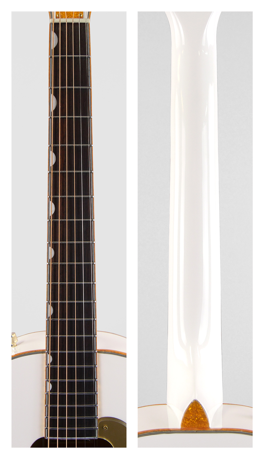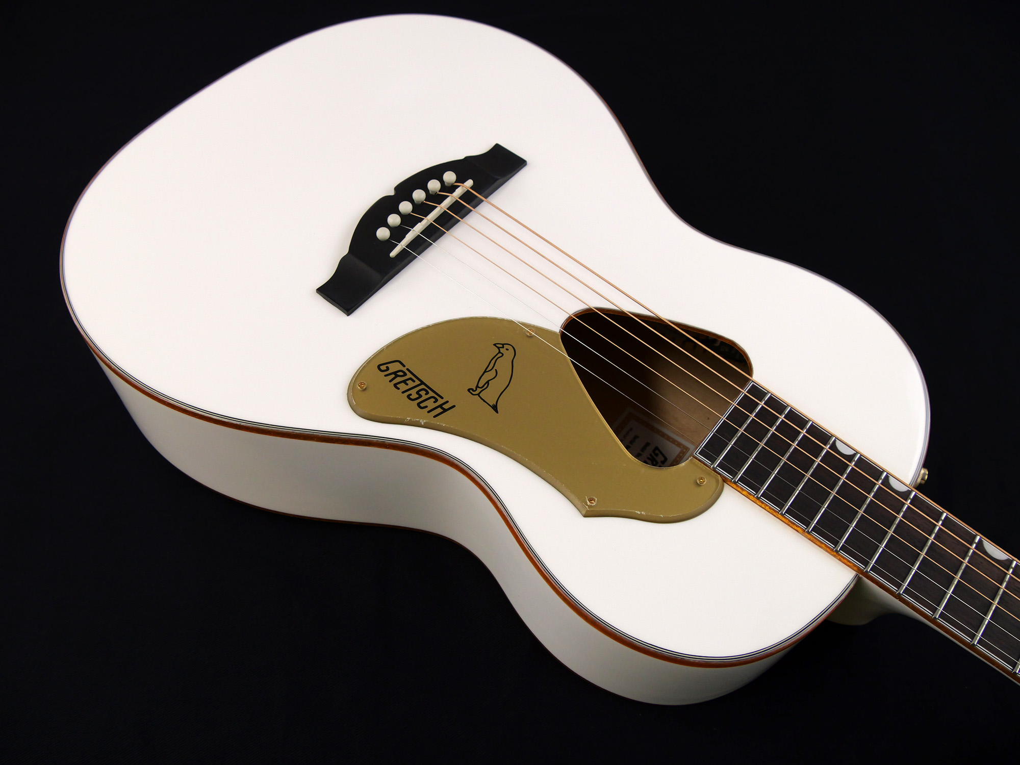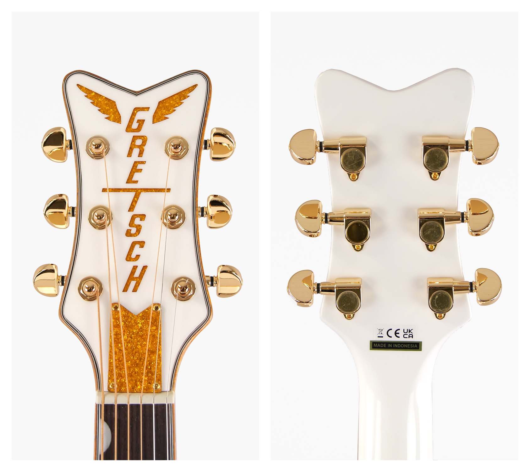 Fishman Isys III PU/オンボード・プリアンプシステムは、現代的なサウンドを加えます。ソリッドスプルース・トップ、メイプル・バック&サイドを使用した本機のクラシックなタッチに、ゴールドスパークルを使用したネックとボディのバインディング、指板のNeo-Classic™サムネイル・インレイ、ゴールドのプレキシピックガード、ヘッドストックに"バーティカルウィング"グレッチロゴなどを採用しています。