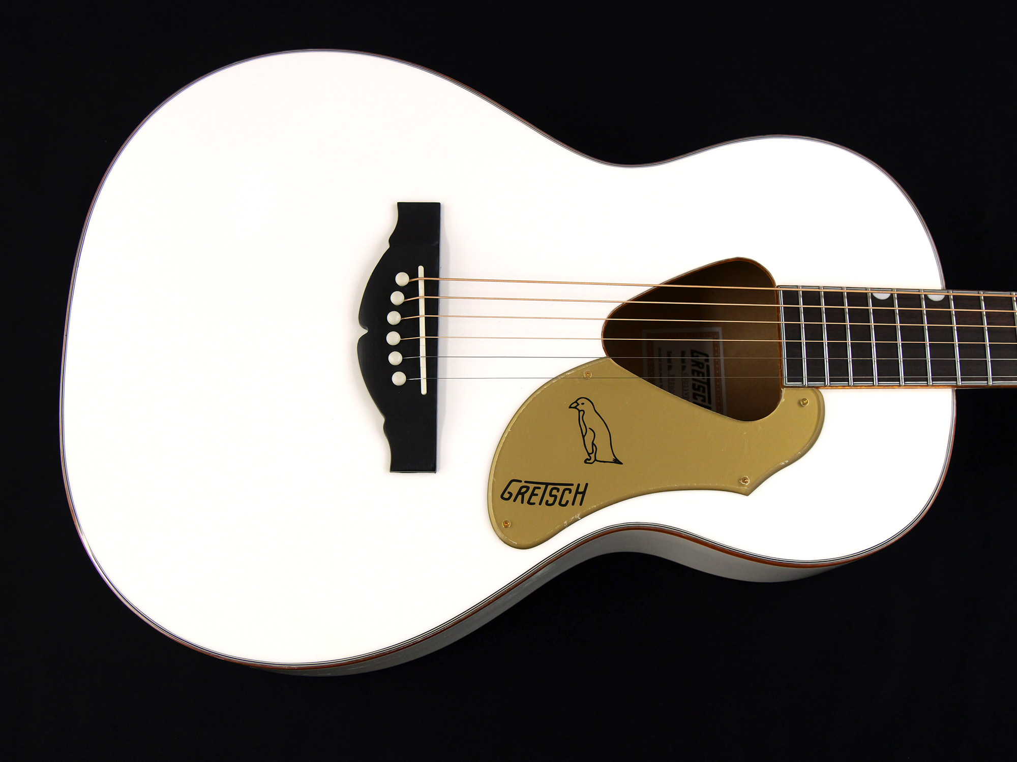 - Pickguard: Gold Plexi with Black Penguin Graphic and Gretsch Logo
