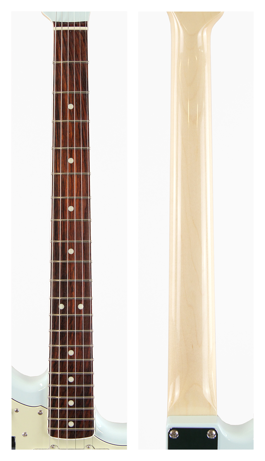 1964-1965の過渡期に使用されていたドット・ポジション・マーク、ネック・バインディングを再現。
