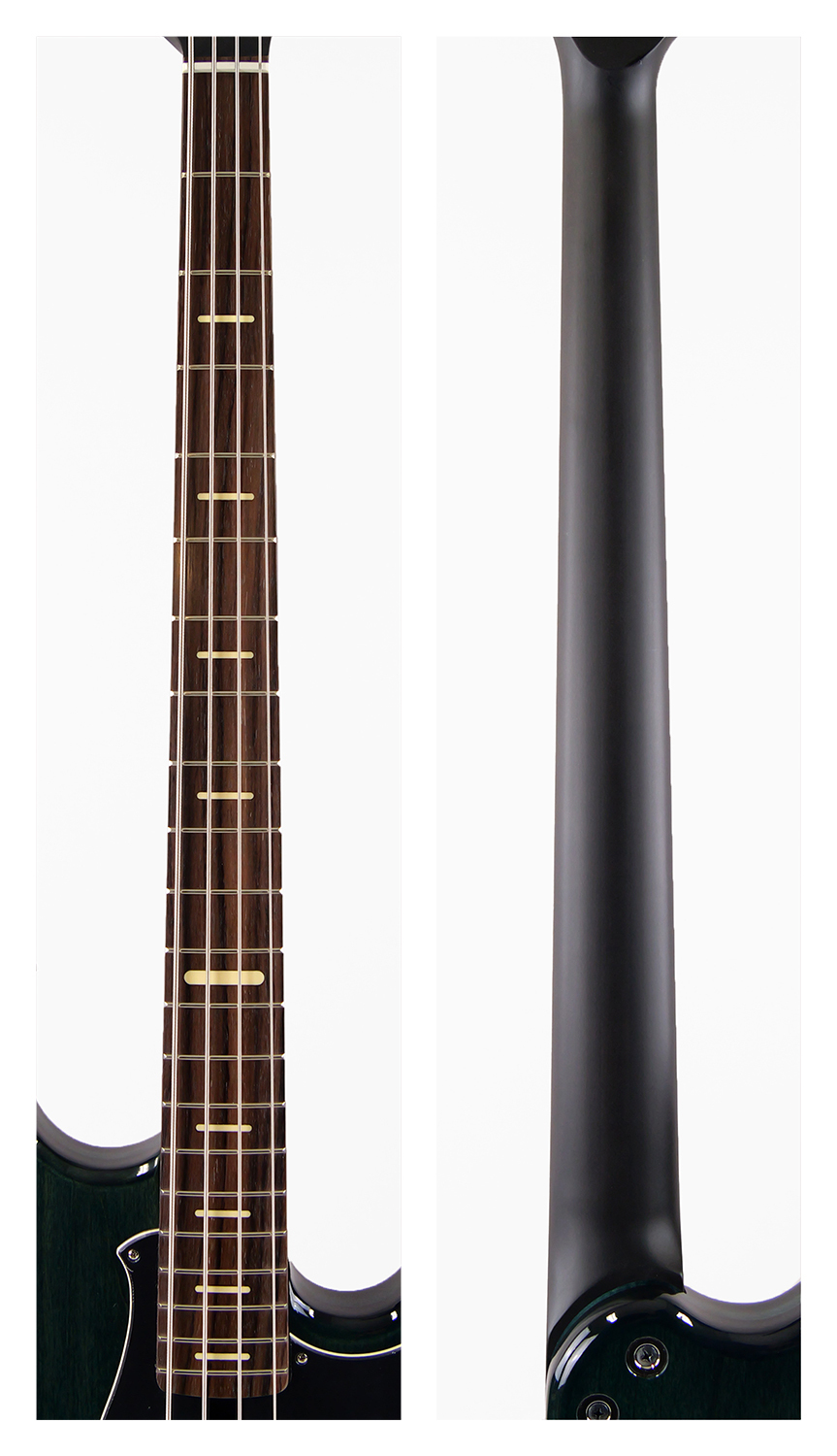 3バンドアクティブイコライザーによる緻密なサウンドメイク、アクティブ、パッシブ切り替えが可能な多機能モデル。アルダー/メイプル/アルダーの3プライ構造。ネック接合にはマイターボルティングネックジョイントを採用し、ボディと一体となった強力な鳴りを生み出します。好みに応じて選択できるコンバーチブルタイプのブリッジを搭載。