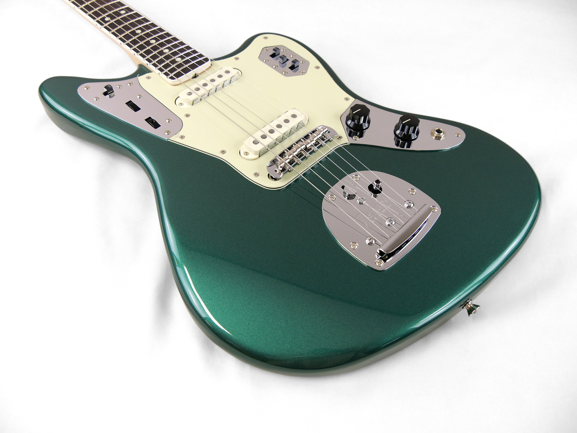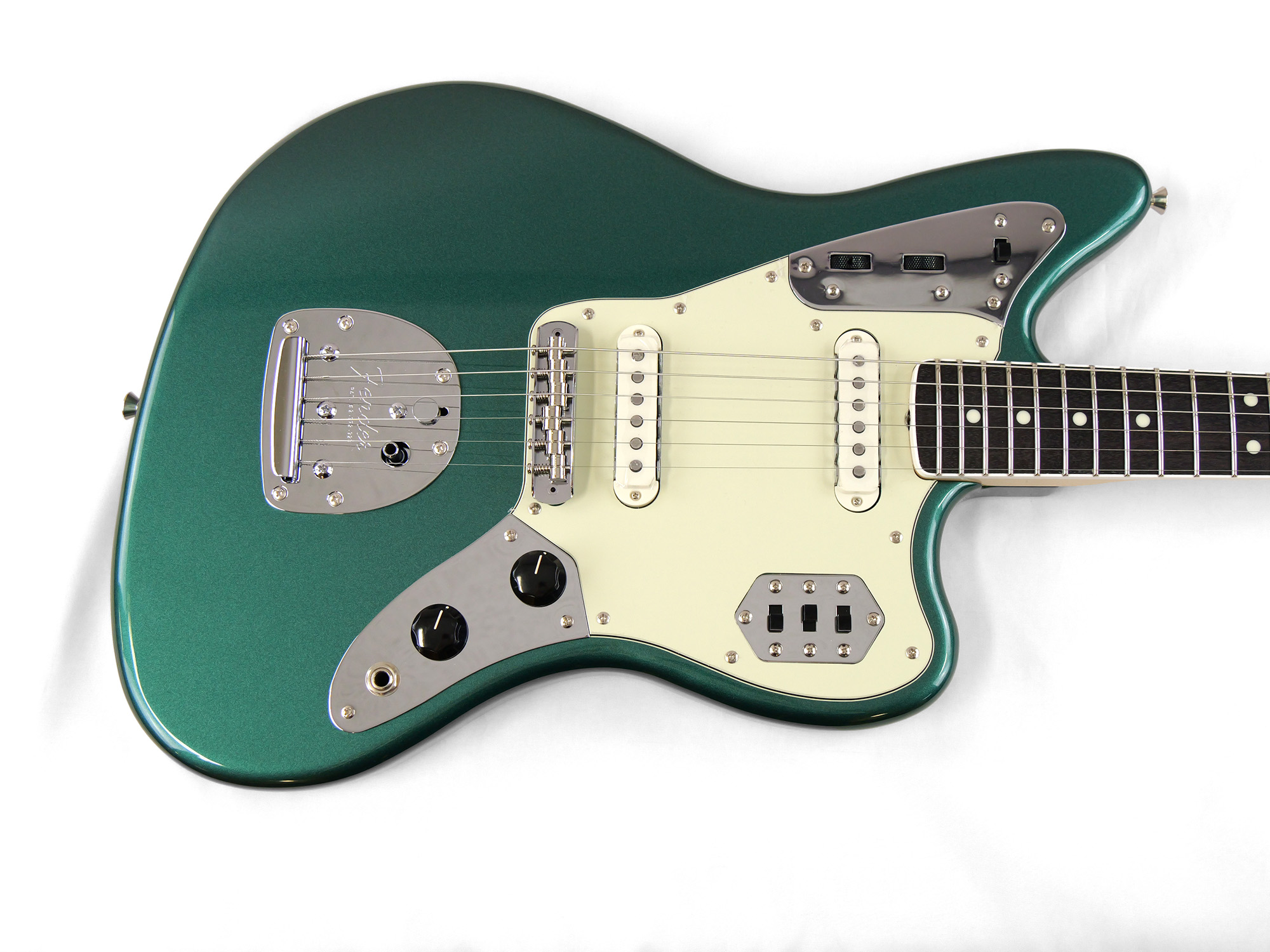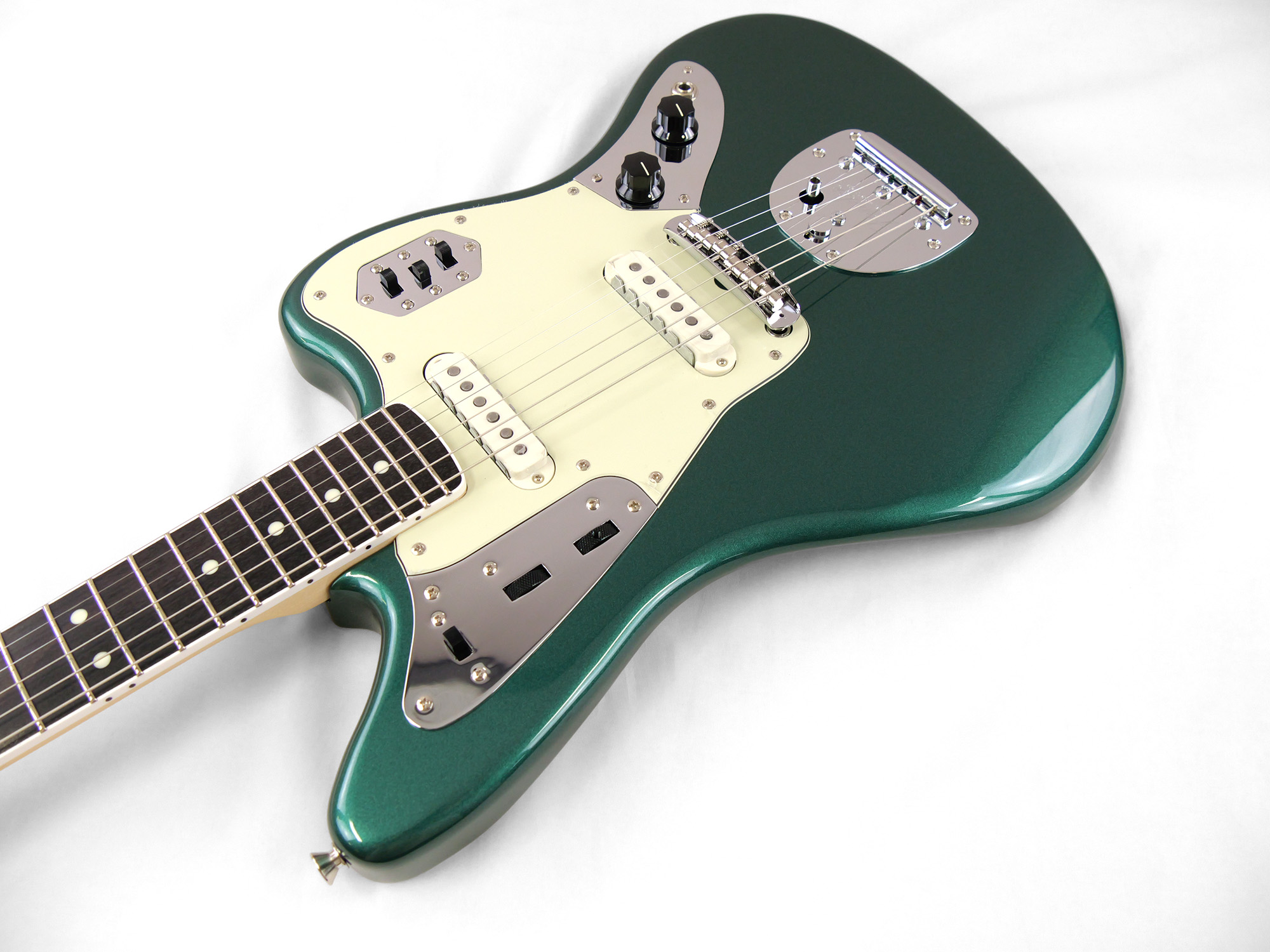 Made in Japan Traditional 60s Jaguar を基に、ボディ材をアルダーに、ピックアップをPure Vintage '65 Single-Coil Jaguarにアップグレード、ネックシェイプをMid '60s "C"、指板Rをヴィンテージ同様に7.25Radius、フレットをミディアム・ジャンボ・サイズ変更、ブリッジ・サドルを弦ズレの少ないムスタング・タイプに変更。