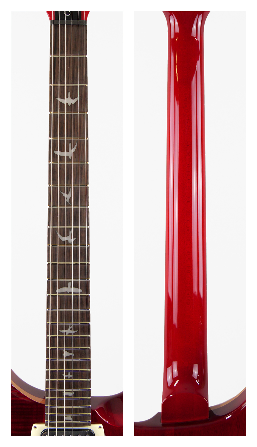 数多くのミュージシャンから愛用されているSE Custom 24は、マホガニー・バック、メイプル・トップのボディ、Wide Thinカーブのメイプル・ネック、ローズウッド指板、バード・インレイを合わせ、PRSデザインのトレモロ・ブリッジを装備。