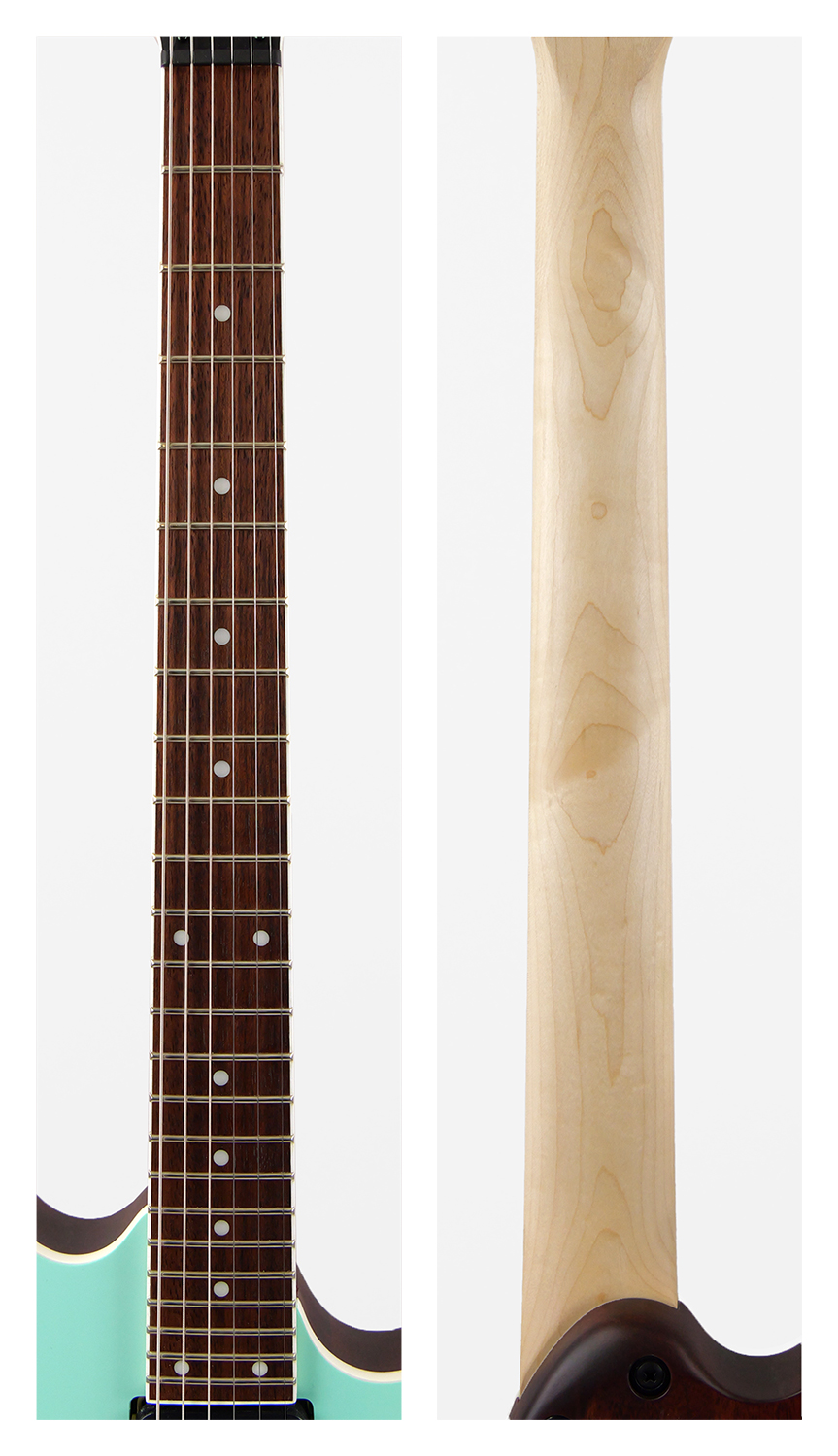 マットな質感のフィニッシュに、ブラックハードウェアを組み合わせたモダンなデザイン。余計なものを排除し、使い勝手を追求したストレートな一本です。2025年製と使用感の極めて少ない個体です。ハードテイル(固定ブリッジ)仕様のため、ダウンチューニング時の安定性も抜群です。お探しの方は是非!