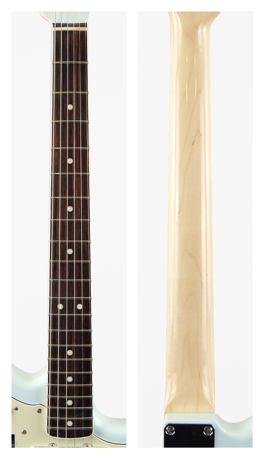 1964-1965の過渡期に使用されていたドット・ポジション・マーク、ネック・バインディングを再現。