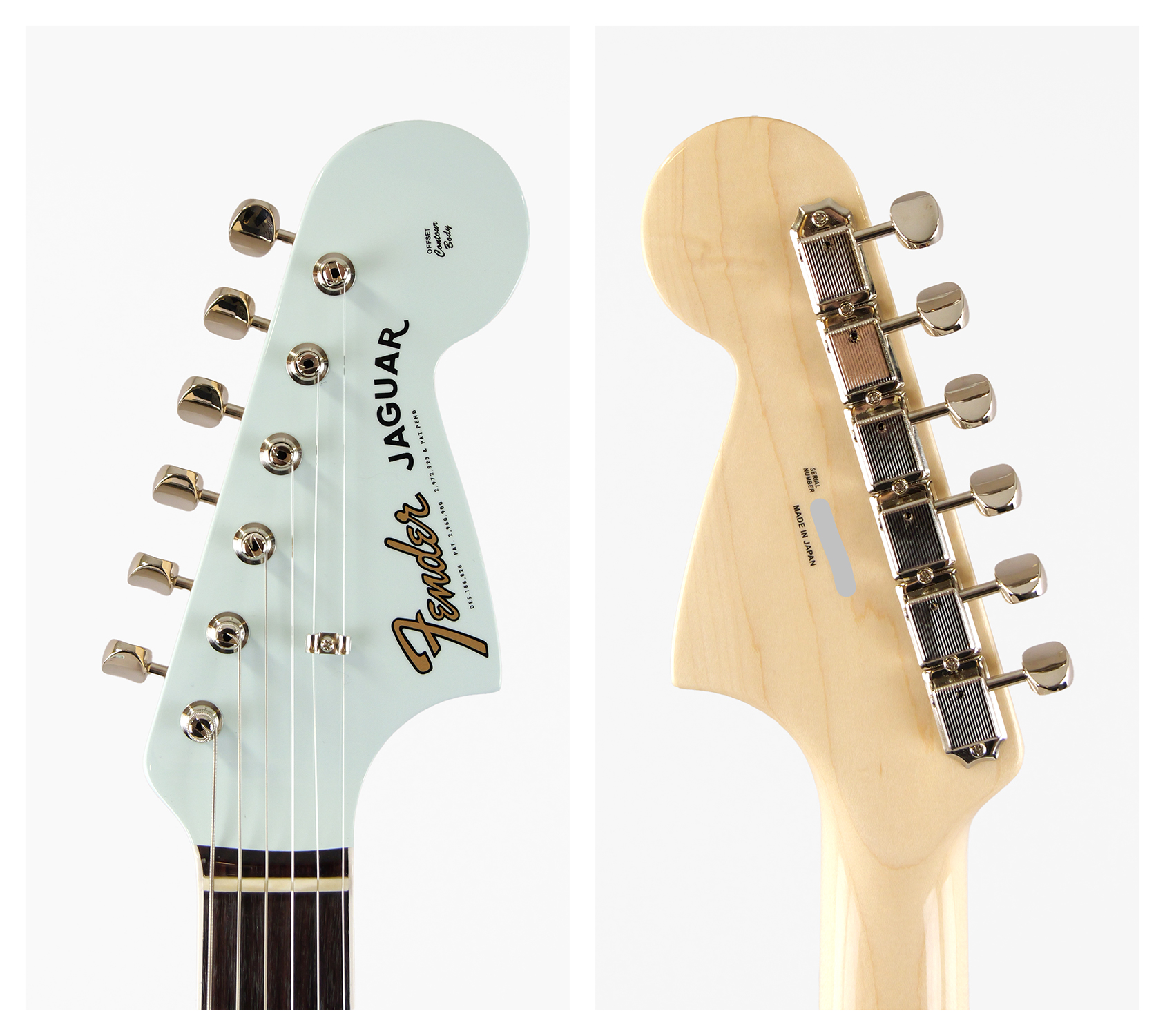 Made in Japan Traditional 60s Jaguar を基に、ボディ材をアルダーにアップ・グレード、指板Rをヴィンテージ同様 7.25Radius、フレットをミディアム・ジャンボ・サイズ変更、ブリッジ・サドルを弦ズレの少ないムスタング・タイプに変更。