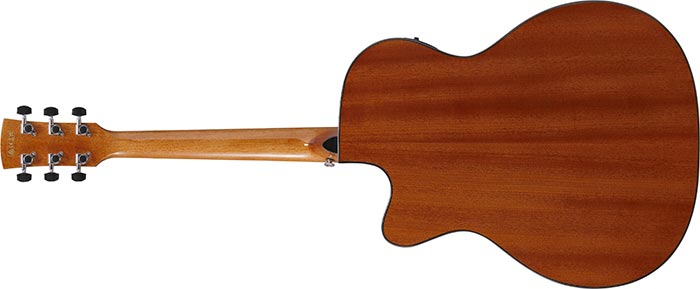 マホガニーに似た外観とサウンドを特長とし、温かな中低音域成分に富むサペリ材をボディのサイドとバックに採用しています。