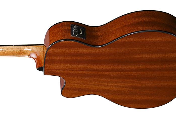 マホガニーに似た外観とサウンドを特長とし、温かな中低音域成分に富むサペリ材をボディのサイドとバックに採用しています。