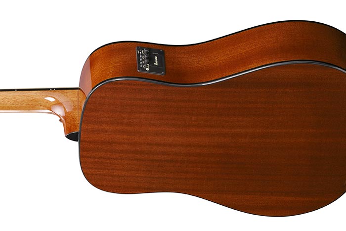 マホガニーに似た外観とサウンドを特長とし、温かな中低音域成分に富むサペリ材をボディのサイドとバックに採用しています。