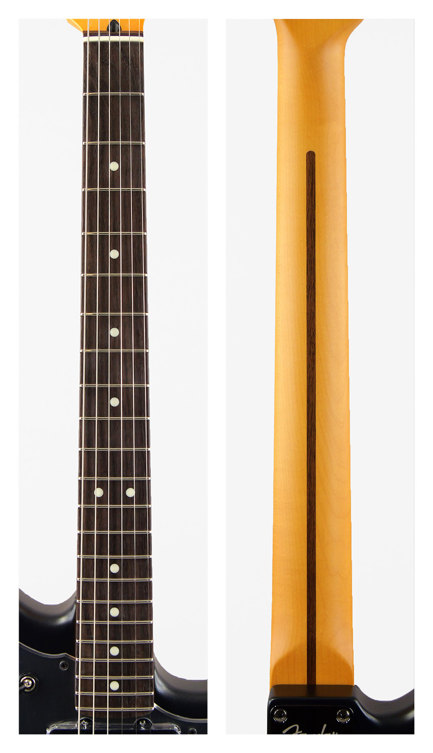 定評あるアルダーボディに新設計のHybrid II Custom Voiced Single Coilピックアップを装備し、ヴィンテージスタイルサドル付きの2点支持トレモロシステムを搭載。ヴィンテージロッキングチューナー、Modern "C"シェイプにサテンフィニッシュのネック、9.5インチラジアスの指板とナロートールフレットがスムーズなプレイヤビリティを提供します。Hybrid IIシリーズならではのモダンさと伝統が融合した、新しい提案となる1本です。