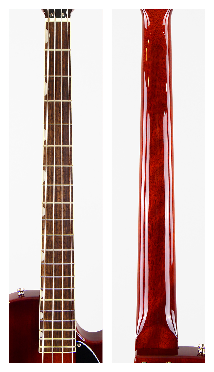 ショートスケール特有の柔らかい弦テンション感による独特のサウンドは、コツっと粒立ち良いアタック感とマイルドなトーンを創出します。フロントピックアップでのサムプレイでの甘く丸みを帯びたサウンドや、両ピックアップを駆使しピックプレイするレイドバックしたサウンド等、このモデルならではの個性豊かな低音がお楽しみ頂けるでしょう。