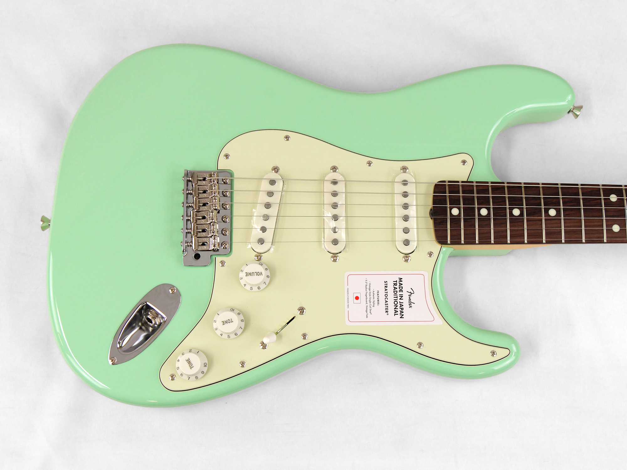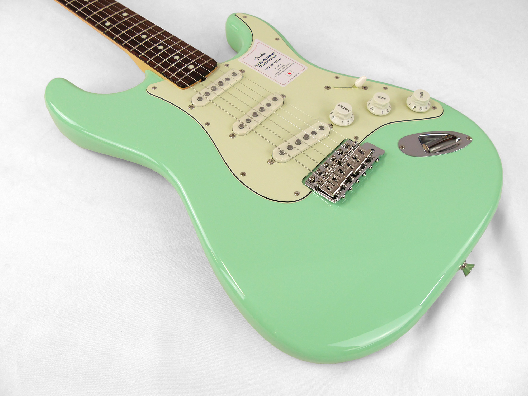Made in Japan Traditional 60s Stratocaster®はグロスフィニッシュのバスウッドボディを採用。21本のヴィンテージスタイルフレットを装備した9.5インチラジアスの”U” シェイプメイプルネックがTraditionalシリーズならではのクラシカルな演奏製を提供します。6サドル式ヴィンテージスタイルSynchronized Tremoloブリッジ、そしてTraditionalシリーズのために選定されたオリジナルピックアップはリアルで音楽的なヴィンテージトーンを奏でます。細めに設計されたナット幅は日本のプレイヤーにも弾きやすい仕様となっています。堅実なギタークラフトマンシップと、プレイヤーのニーズに柔軟に対応する答えが、本シリーズに反映されています。