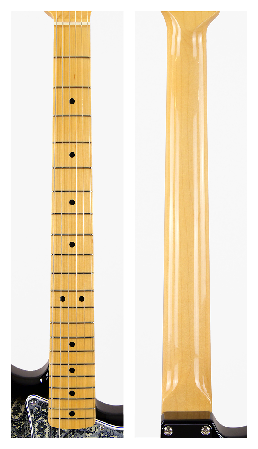 Made in Japan Limited Stratocaster Paisleyは、ペイズリー柄のシートを貼り付けた、グロスフィニッシュのアルダーボディを採用。21本のヴィンテージスタイルフレットを装備した7.25インチラジアスの1969 “U”シェイプメイプルネックが、当時を忠実に再現したクラシカルな演奏製を提供します。