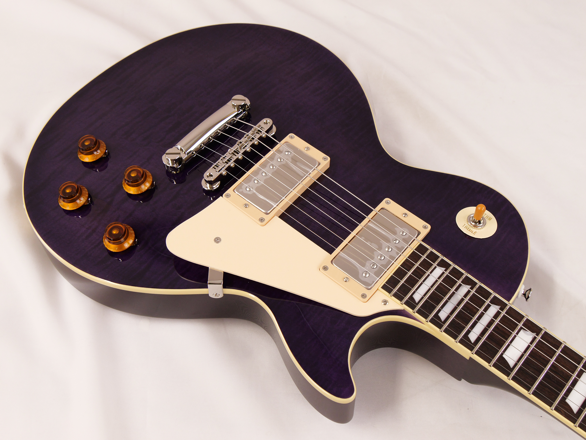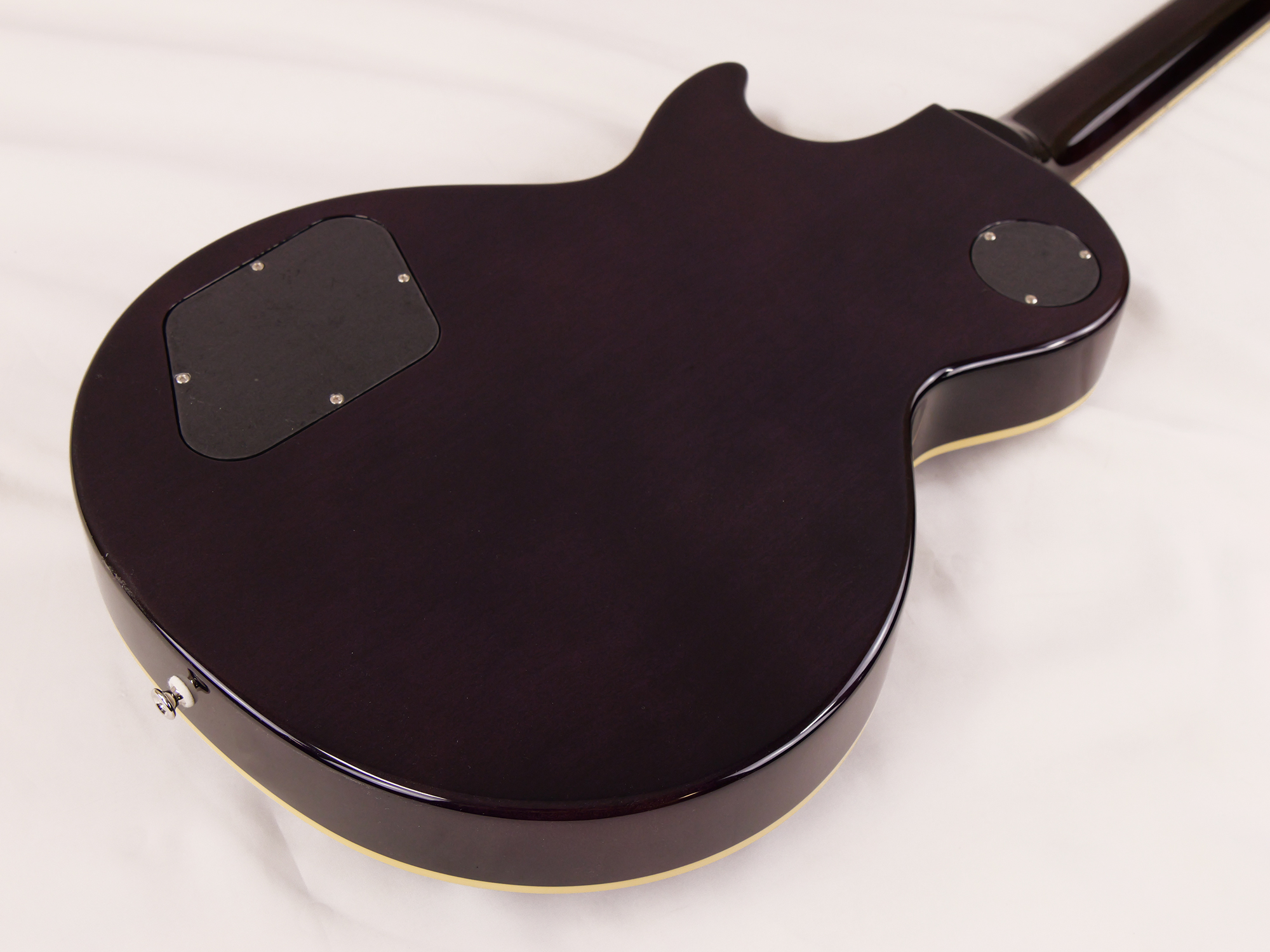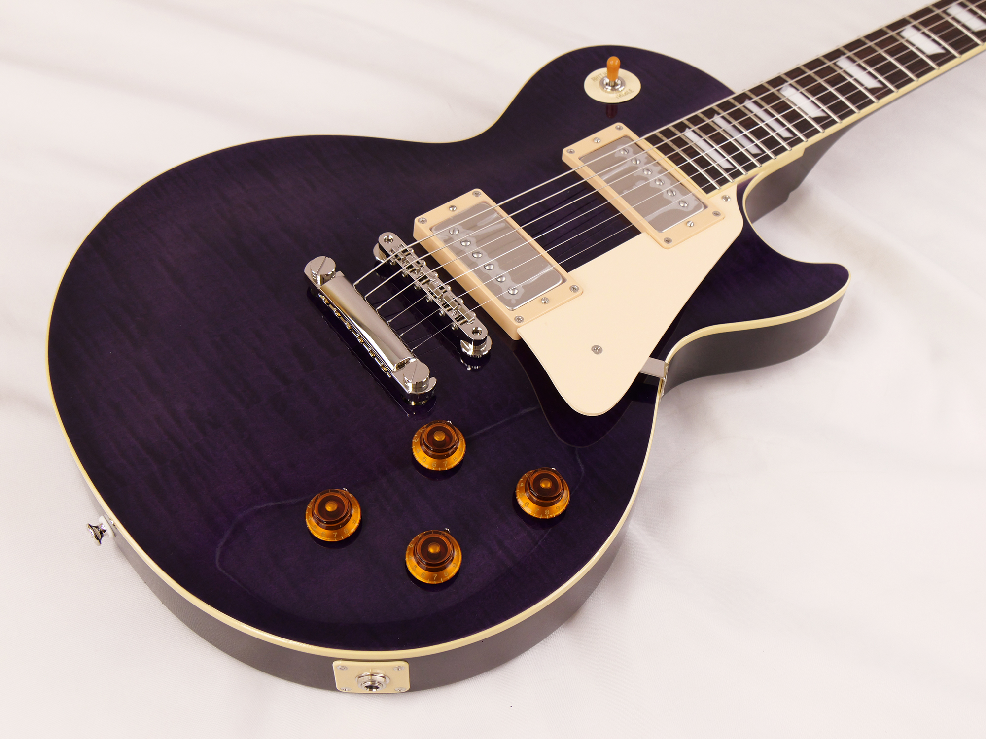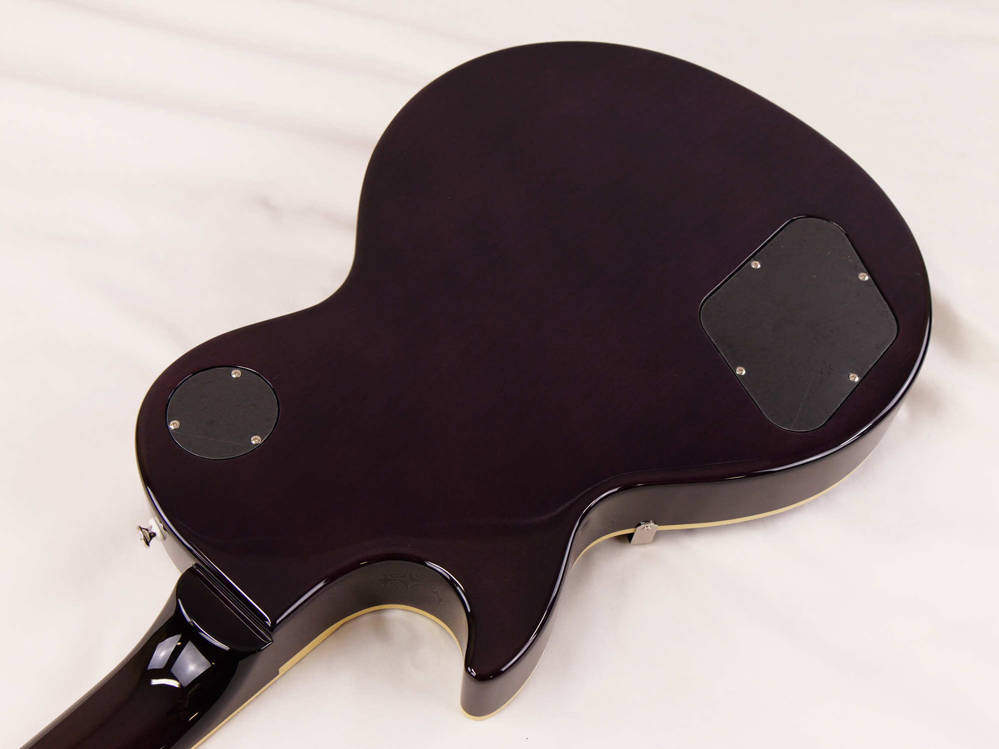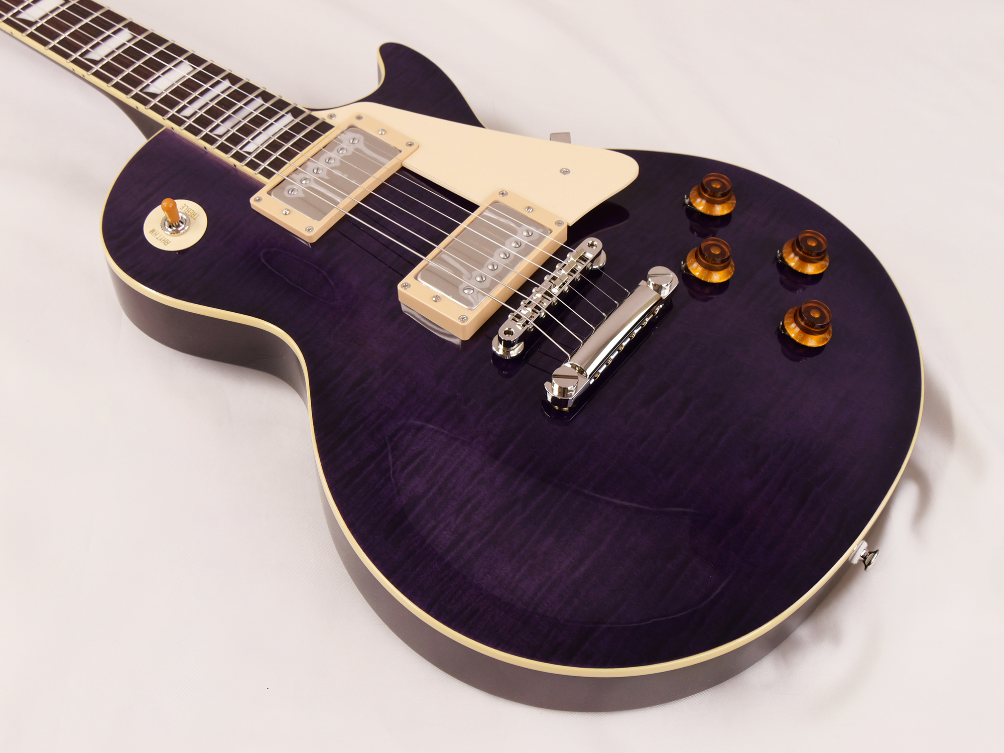 フレイム・メイプルをトップにラミネートした王道のレスポール・スタンダード・スタイル。ネックとボディの接合には伝統的なニカワ接着が採用されており、セットネックならではの響きの一体感がしっかりと感じられます。