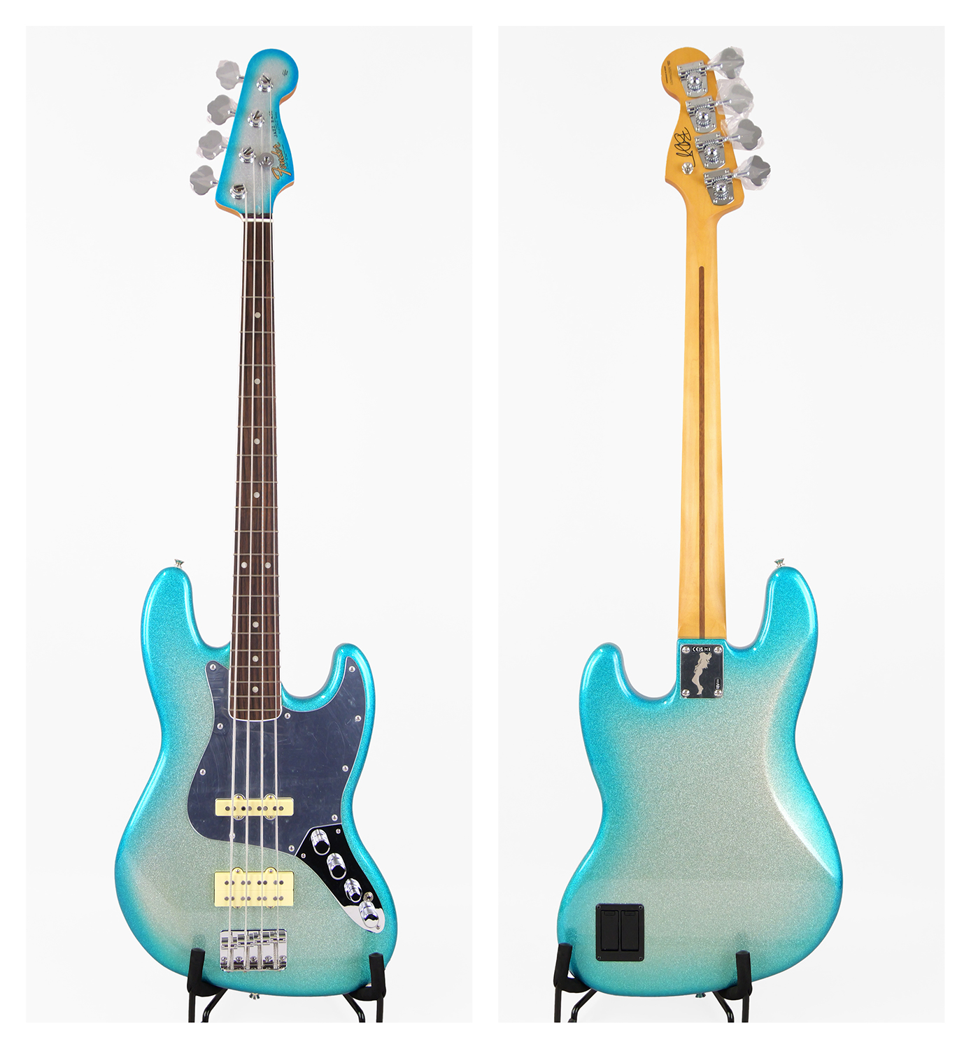 Blu DeTiger(ブルー・デタイガー)は、音楽界に旋風を巻き起こしている大ブレイク中のアーティストです。フォーブス誌が選ぶ「世界を変える30歳未満30人」を表彰する『Forbes 30 Under 30』ミュージックリストのカバーアーティストを飾った彼女は、次世代のポップミュージックを代表する存在です。Limited Player Plus x Blu DeTiger Jazz Bass®は、彼女のシグネイチャーサウンドとプレイスタイルを称えるシグネイチャーモデルです。鮮やかなSky Burst Sparkleフィニッシュ、軽量なアッシュボディ、カスタムピックアップを搭載した本モデルは、Blu DeTigerの何百万人ものファンが愛する生き生きとしたトーンと唯一無二のスタイリングを実現します。