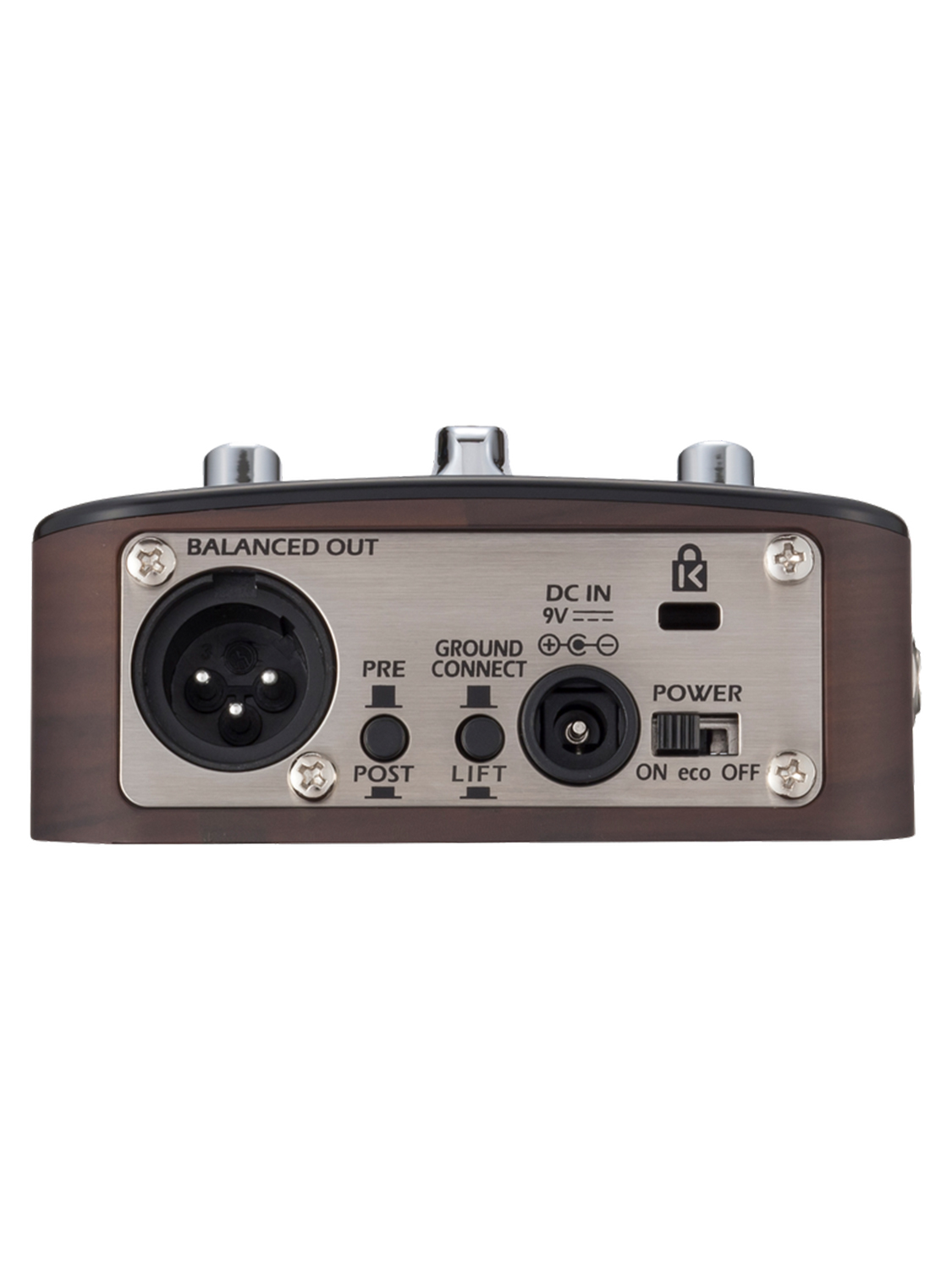 ドレッドノート、ラウンドショルダー、オーケストラ、12弦ギター、ナイロンギター、アップライトベースなどのボディ鳴りをシミュレートした16種類のソースギター・プリセットを搭載し、ボディの材質、形状、構造によって異なるアコースティック楽器の美しく豊かな響きを、ライブステージのPAスピーカーから鳴らすことが可能。XLRバランスアウトを装備し、DIボックスを使わずにミキシングコンソールに直接接続することができます。