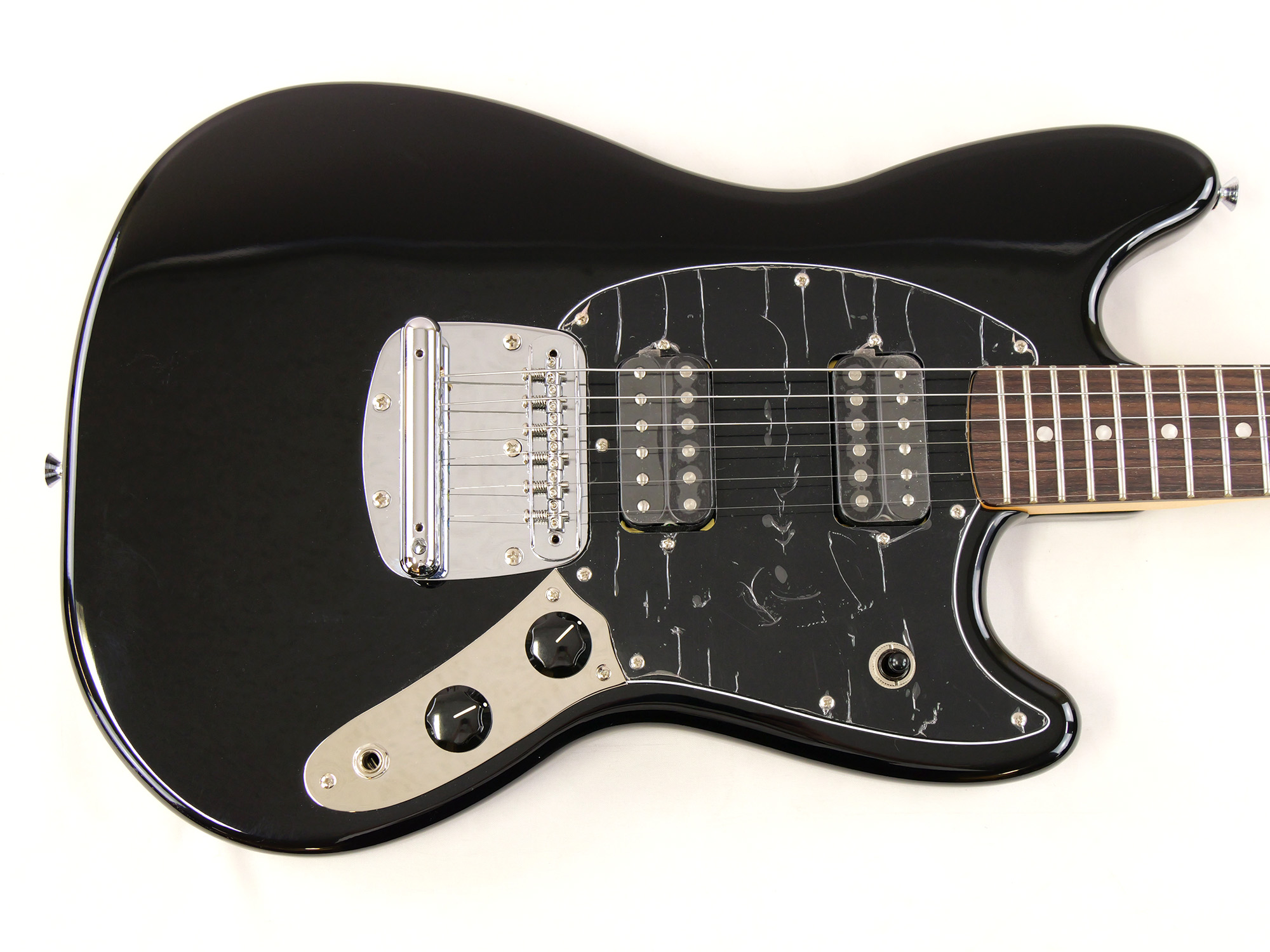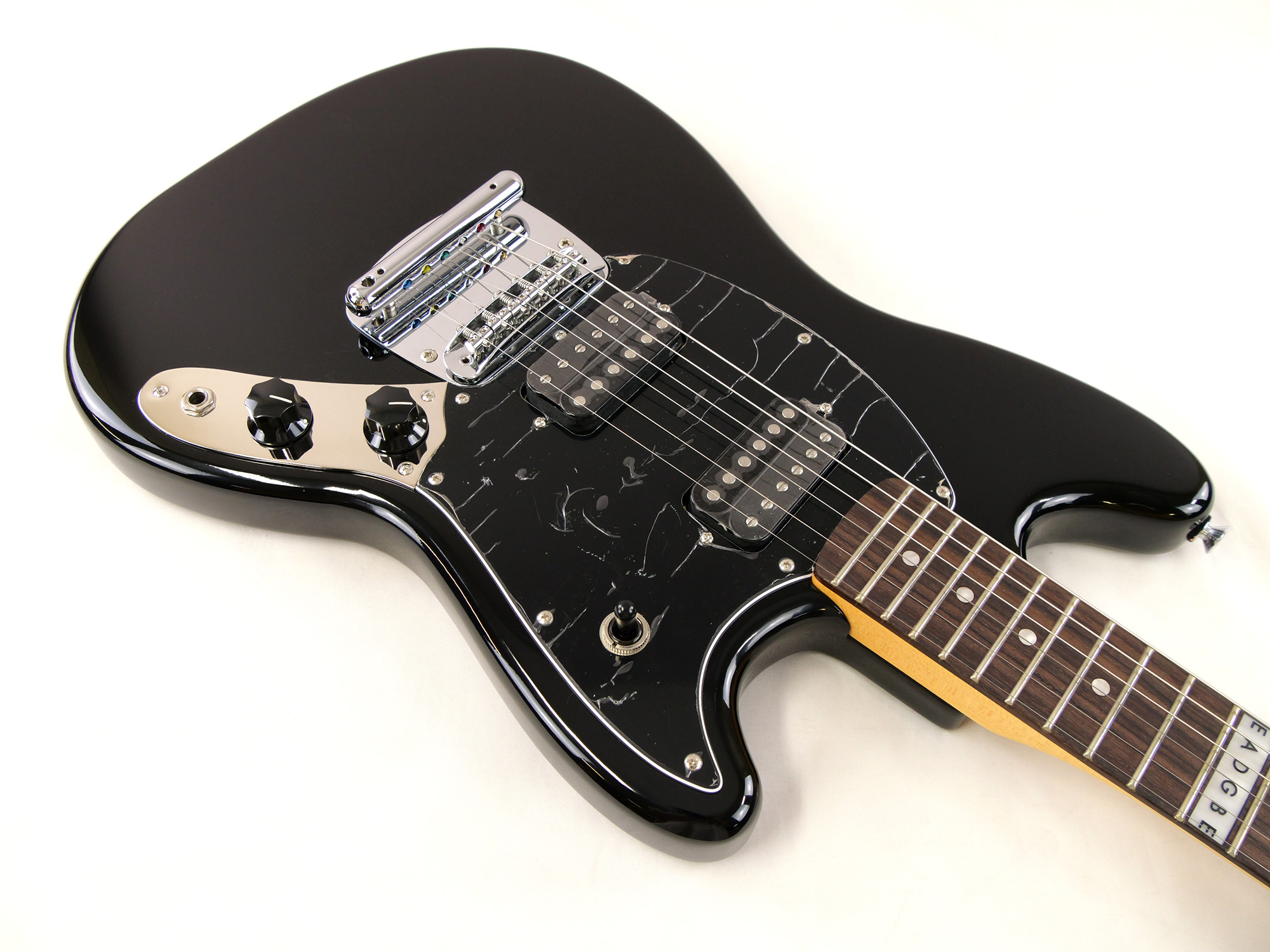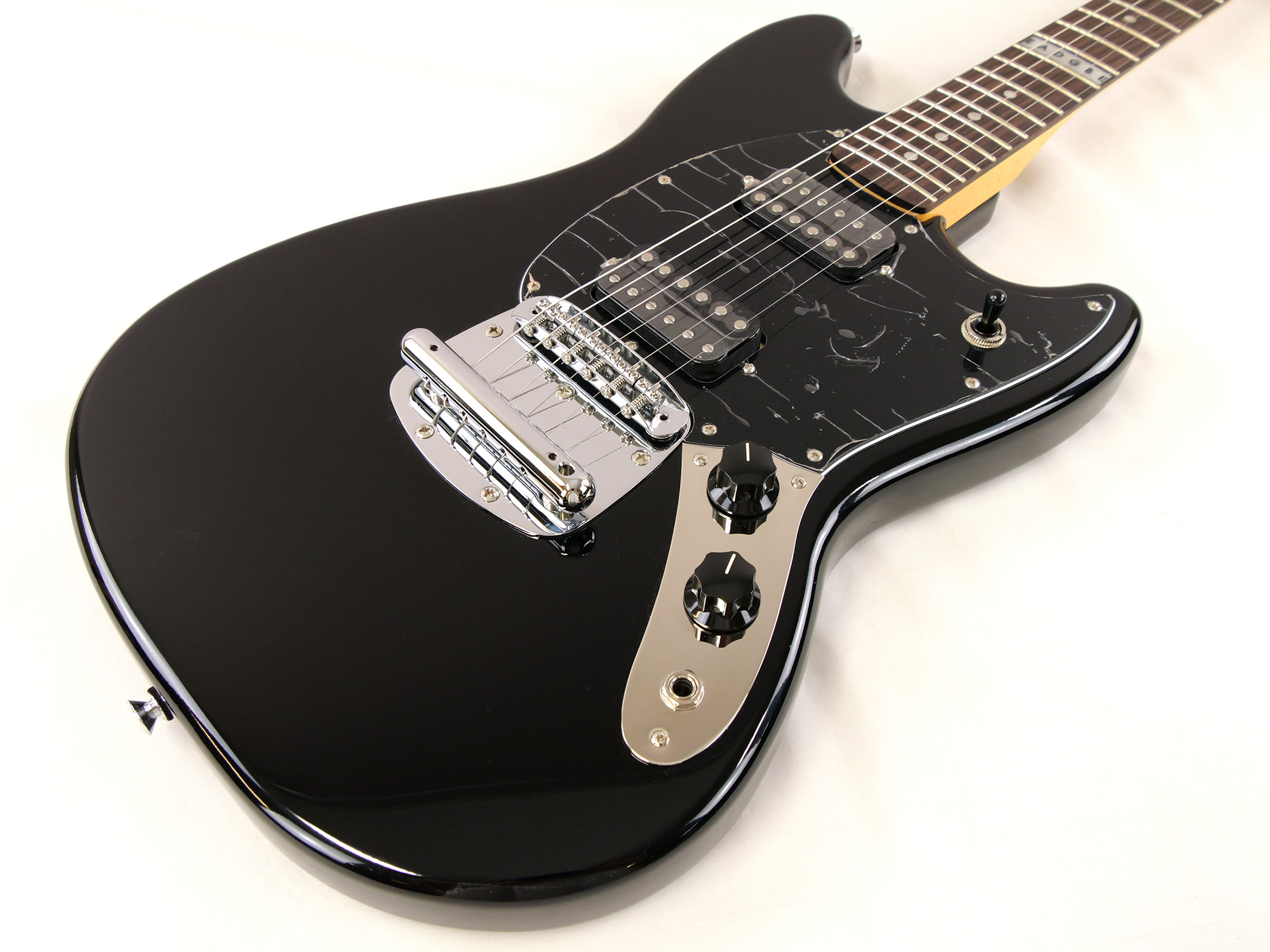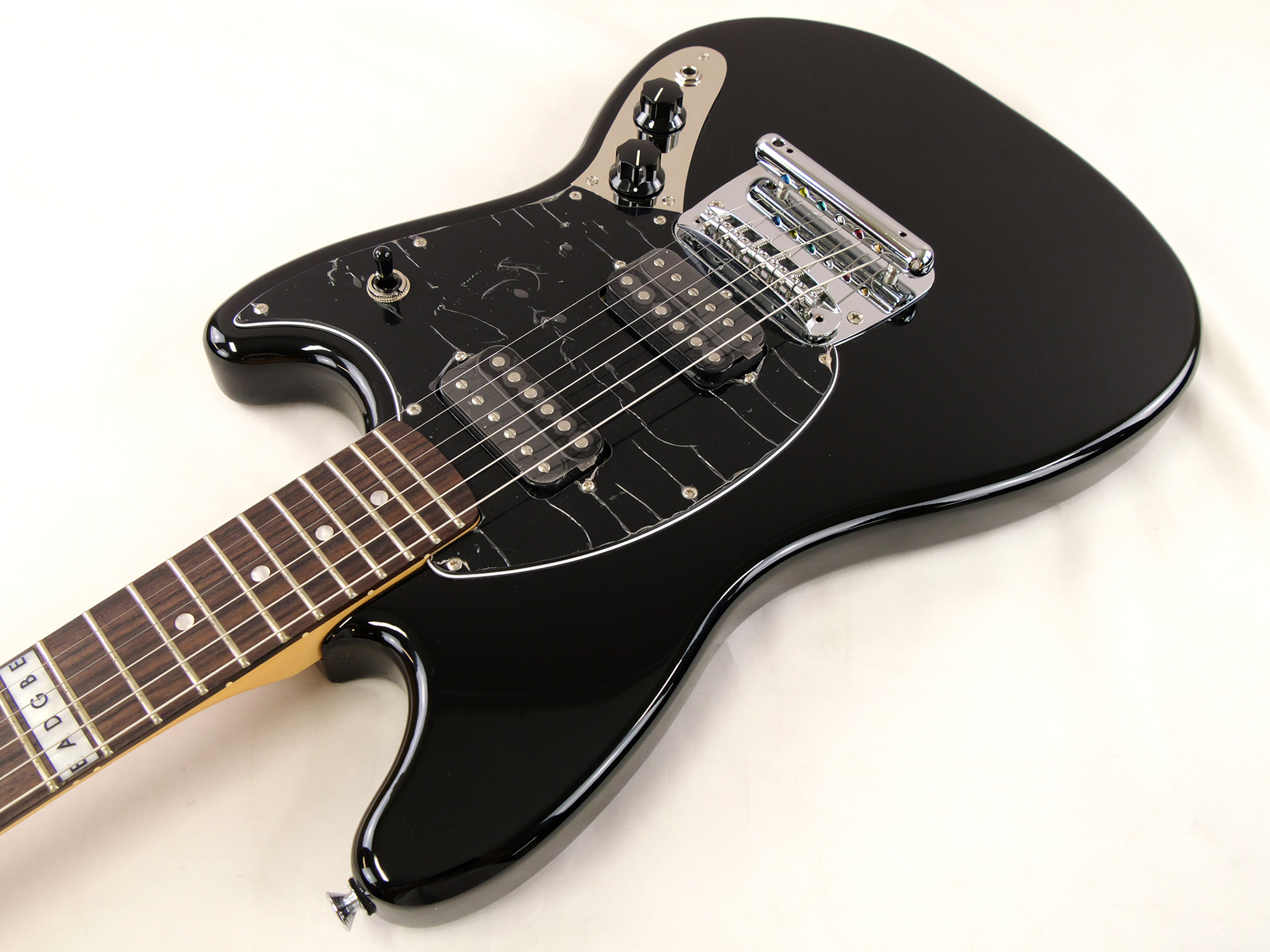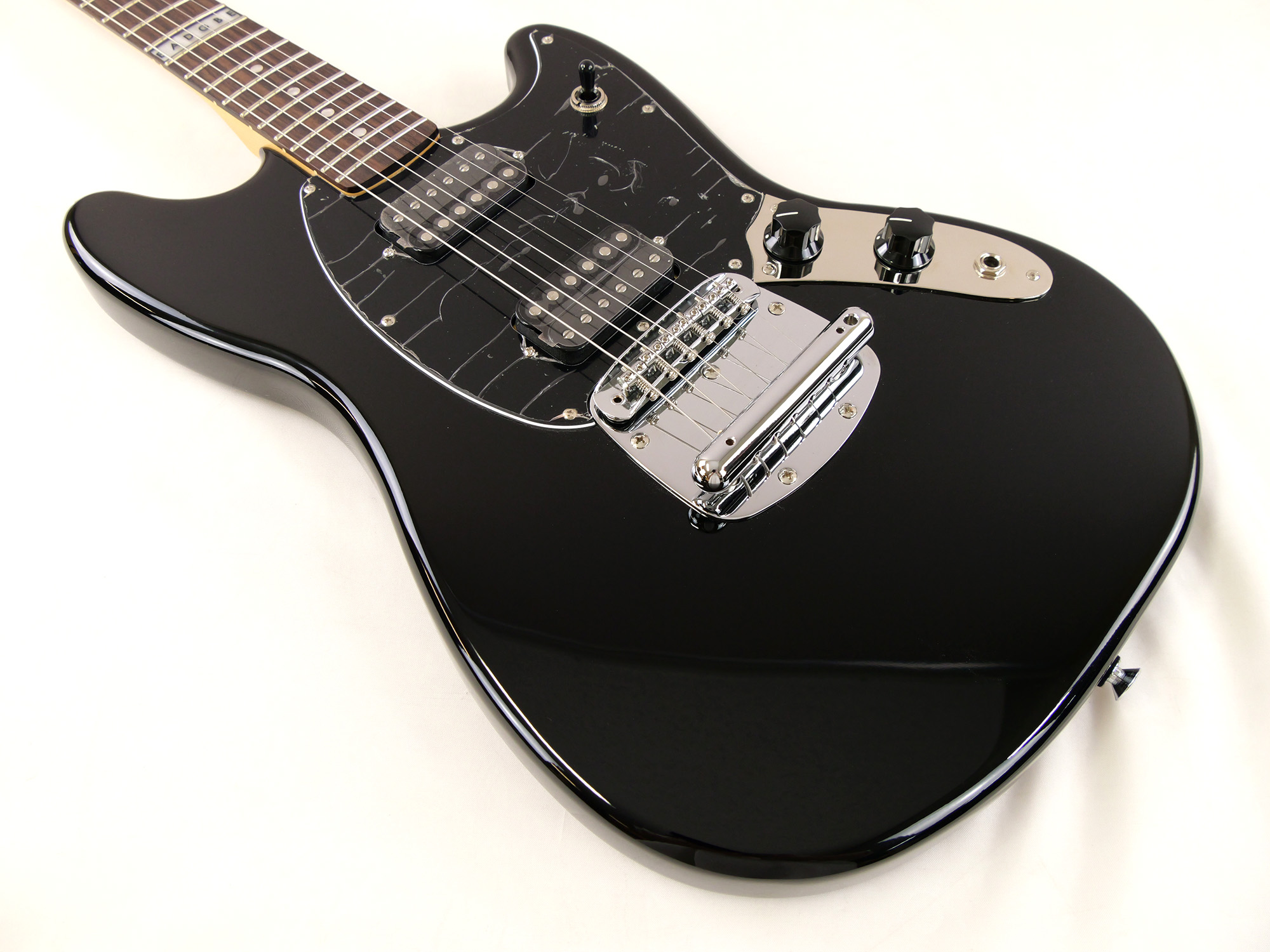 シングルコイルピックアップが採用されることの多いムスタングに、ハムバッキング・ピックアップ2基を搭載。3点のトグルスイッチによってピックアップの選択が可能です。