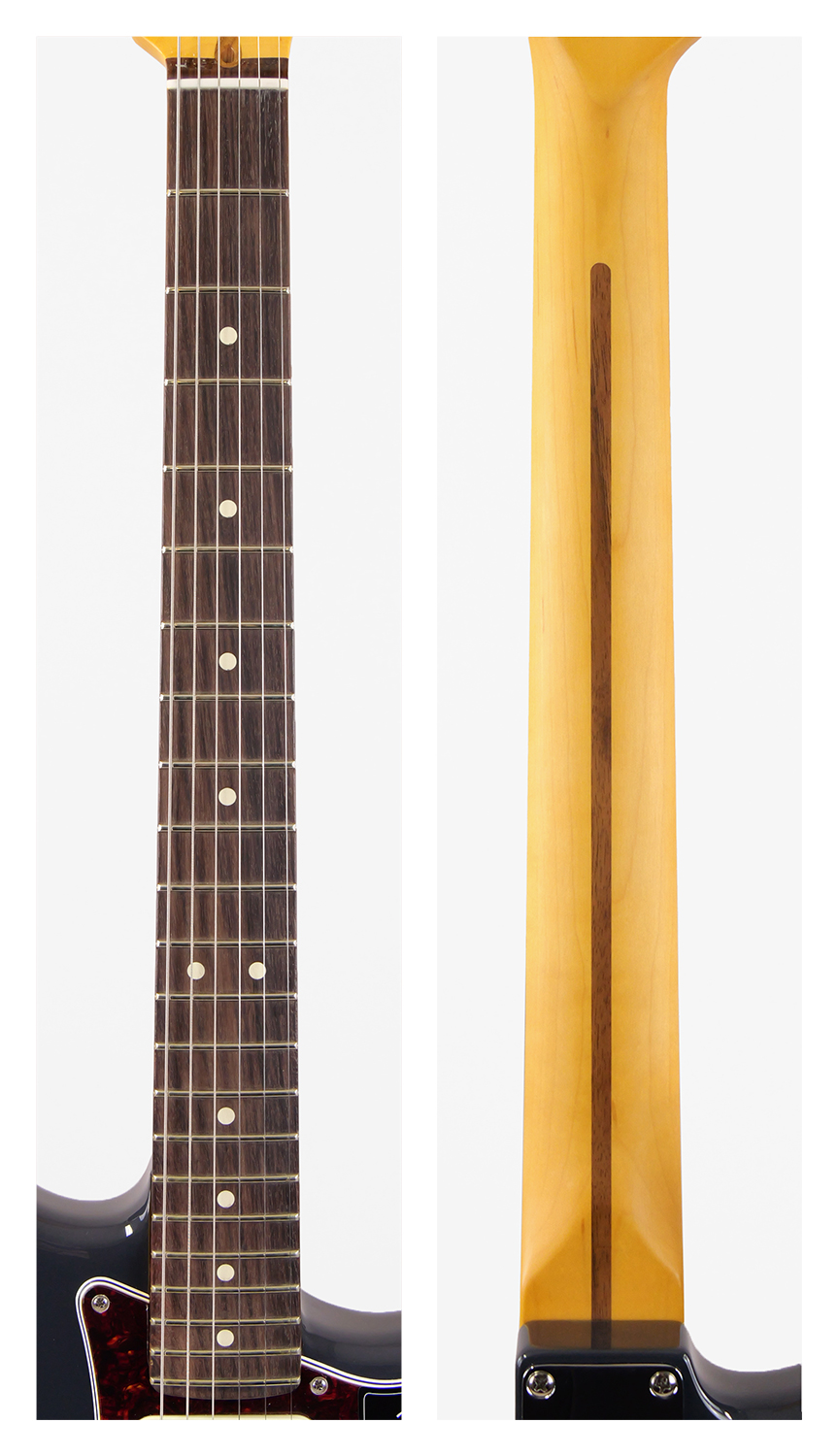 - Modern “C”シェイプネック、9.5インチラジアス指板、ミディアムジャンボフレット