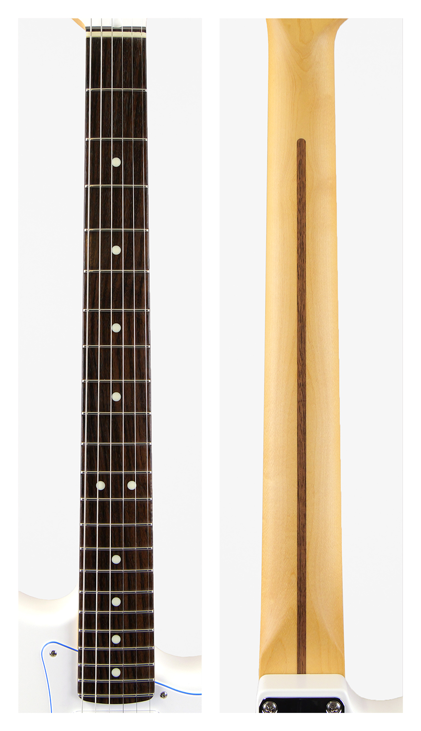 ベースとなっている、Hybrid II Stratocaster®は、定評あるアルダーボディにHybrid II Custom Voiced Single Coilピックアップを装備し、ヴィンテージスタイルサドル付きの2点支持トレモロシステムを搭載。ヴィンテージロッキングチューナー、Modern "C"シェイプにサテンフィニッシュのネック、9.5インチラジアスの指板とナロートールフレットがスムーズなプレイアビリティを提供します。