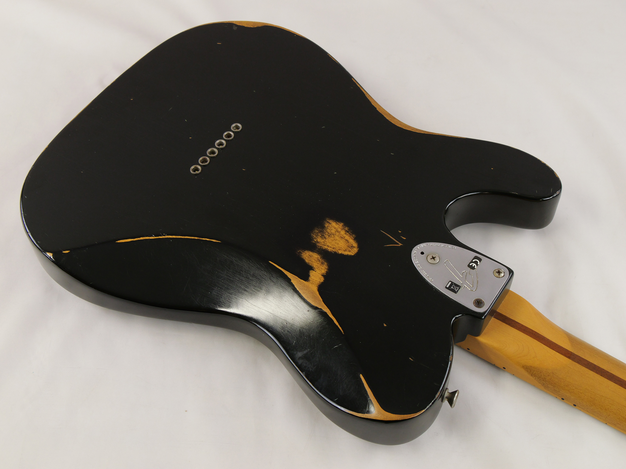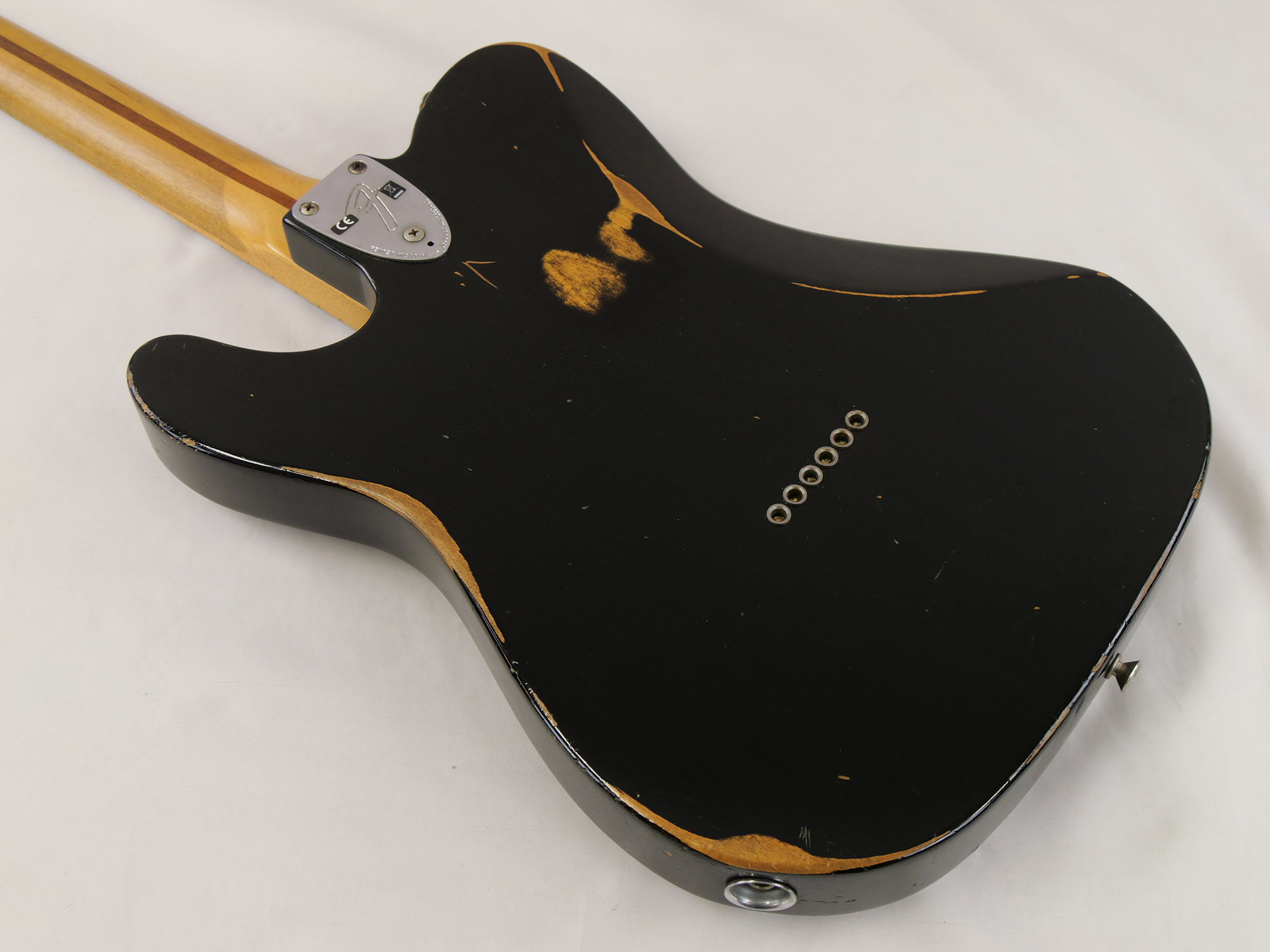 ニトロセルロース・ラッカーフィニッシュに施された大胆なレリック(Road Worn)加工。2010年製の本機は、自然な弾き傷や塗装のウェザーチェックが加わり、新品のレリックでは出せない本物の風格を纏っています。