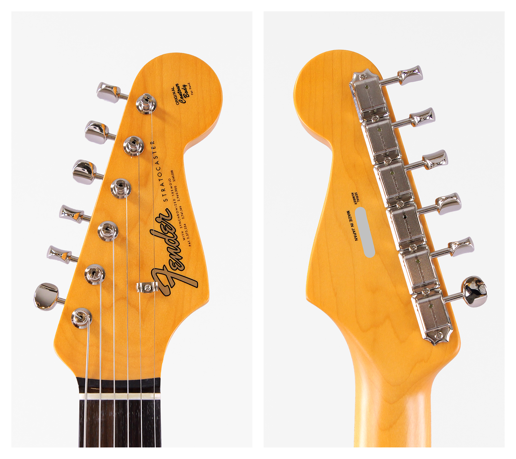 本人実機からプロファイルされたネックは7.25インチラディアスのラウンドローズ指板に約41mmのナット幅と薄めの1965 “C”シェイプとなっており、ヴィンテージの握り心地を忠実に再現しつつNarrow Tallフレットによりスムーズな演奏性を実現しています。