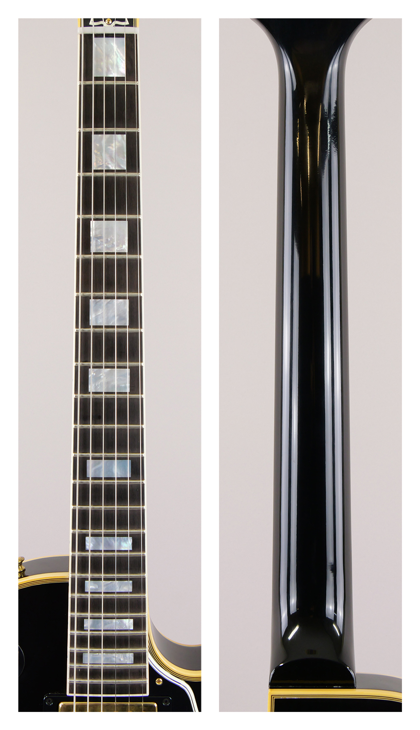 オールマホガニーボディ(ノン・ウェイトリリーフ)による重厚なダークミッドレンジと、エボニー指板のブライトなアタック感が織りなす極上のトーンを核に、ヴィンテージPAFの再現である Custombucker Alnico III (Unpotted) ピックアップ、エネルギーをダイレクトに伝える50s Rounded Medium C ネックプロファイルを採用。長年の時を経たような落ち着いた輝きを放つVOSフィニッシュとゴールド・ハードウェア、そしてKluson WafflebackチューナーやPaper-in-Oilコンデンサといったヒストリック・パーツの忠実な再現により、ルックス、サウンド、プレイアビリティの全てにおいて最高峰と称されるオリジナル「1957 Les Paul Custom」の魅力を完全に復刻。