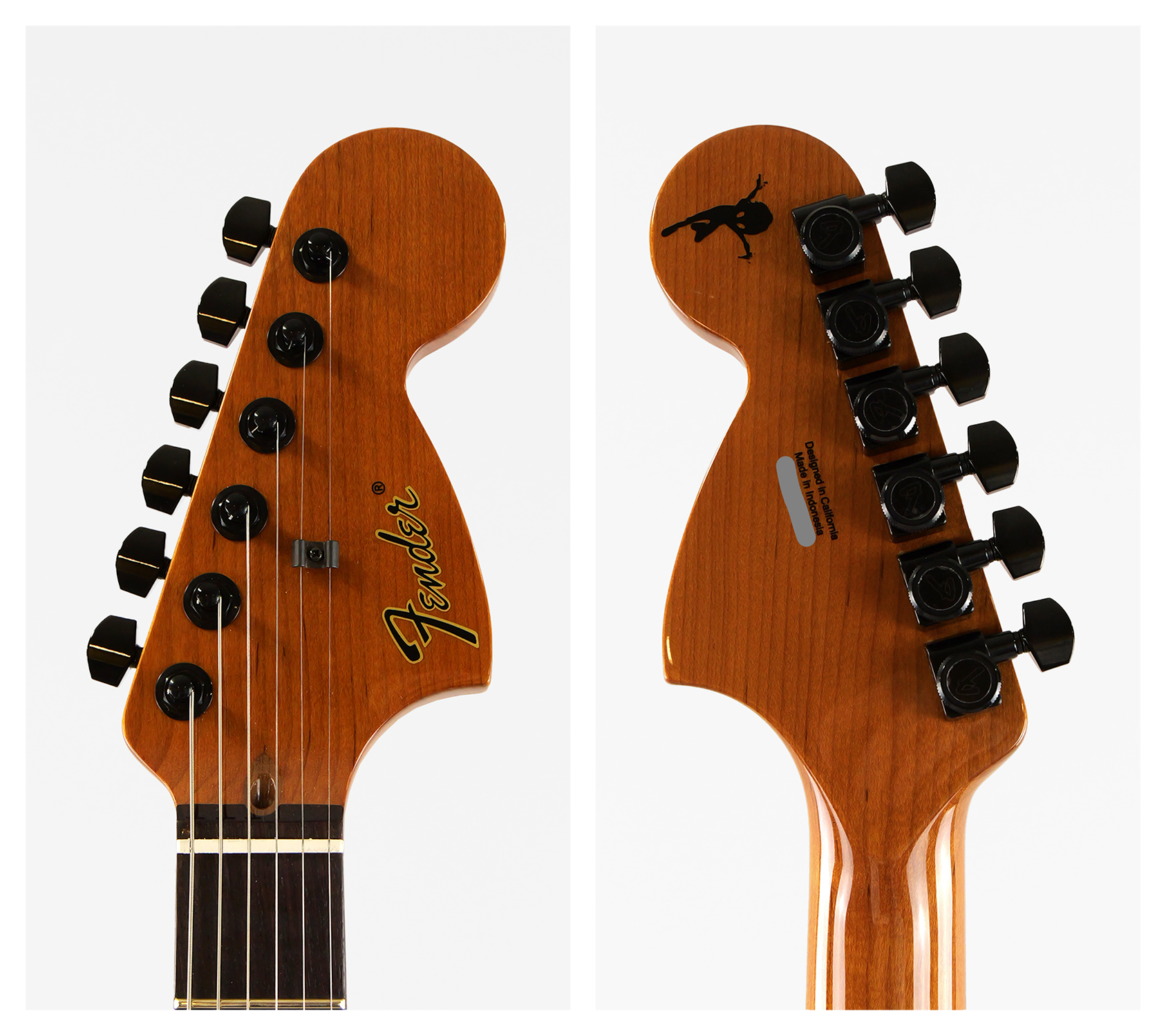 ヘッドストック裏とネックプレートには、トムのオリジナルサインを配しています。