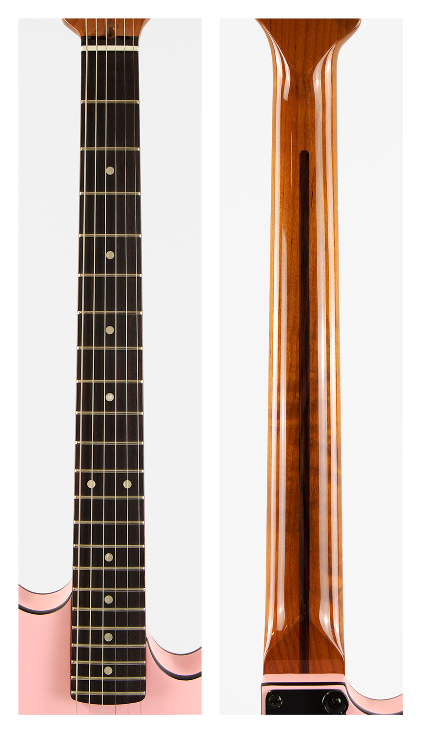 ミディアムジャンボフレットと12インチラジアスローズウッド指板を採用した”C”シェイプネックは、快適でモダンな演奏性を提供します。