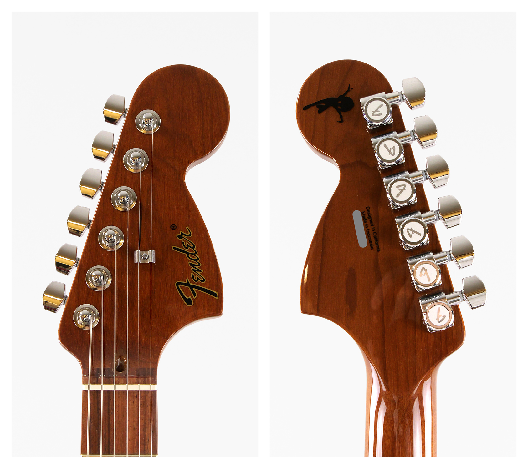ヘッドストック裏とネックプレートには、トムのオリジナルサインを配しています。