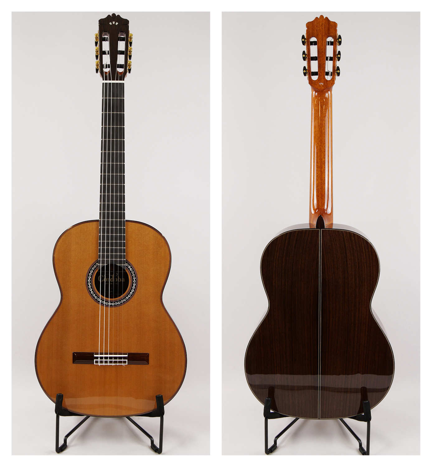 カナディアン・シダーをトップに、インディアン・ローズウッドをバック&サイドに使用したオール単板・スパニッシュ・スタイルのギターです。