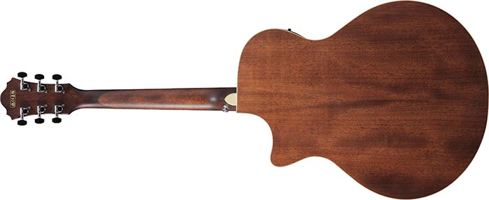 もちろん、極端にボトムのみに偏ったサウンドを出すような設計ではなく、あくまでもステージ・ギターとしての最良を目指し、ステージでの音作りのし易さを重要視しました。バランスの取れたトーンを前提にしたうえで、従来のAEシリーズより低音域を増すことを目的として設計しています。