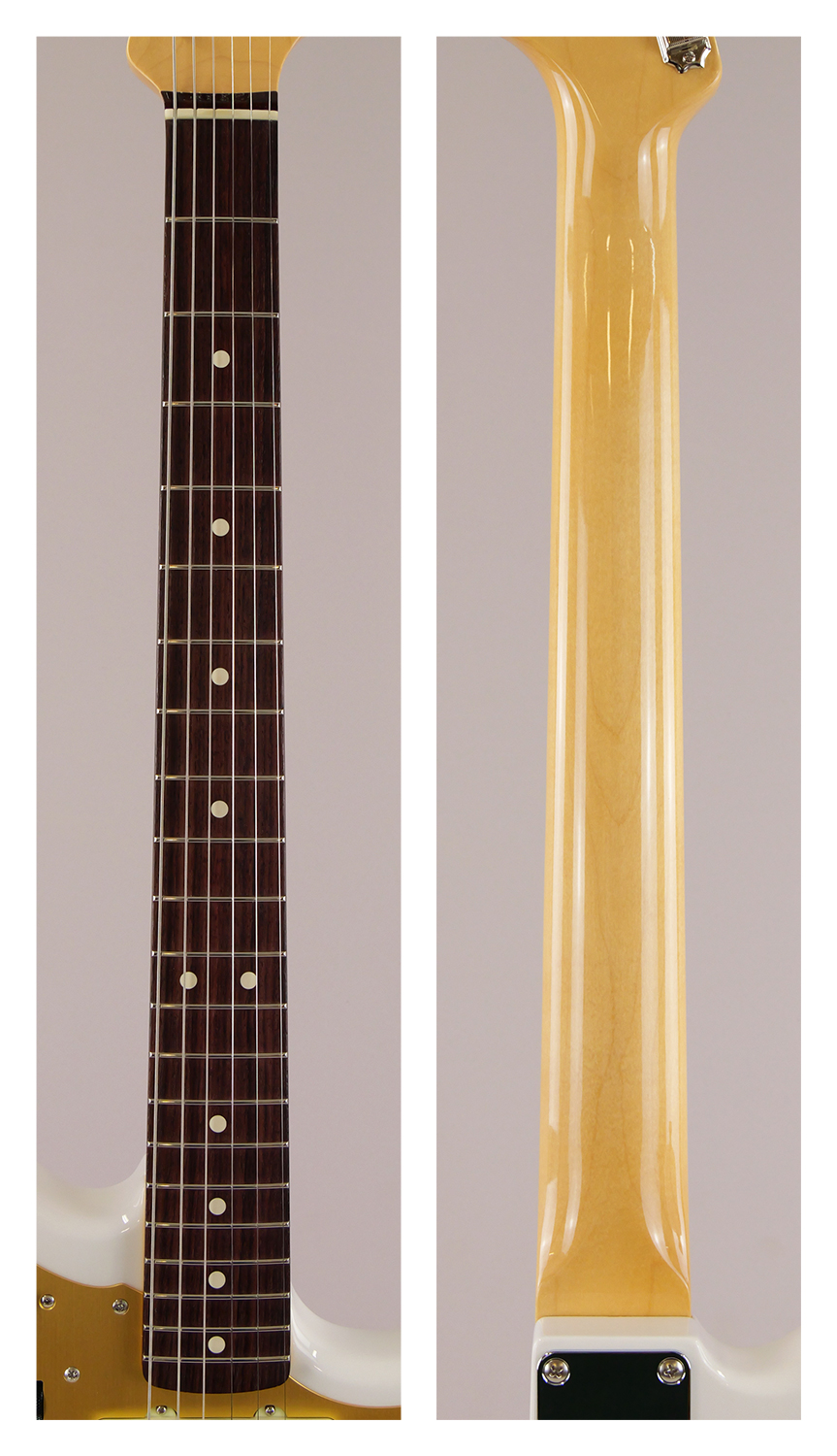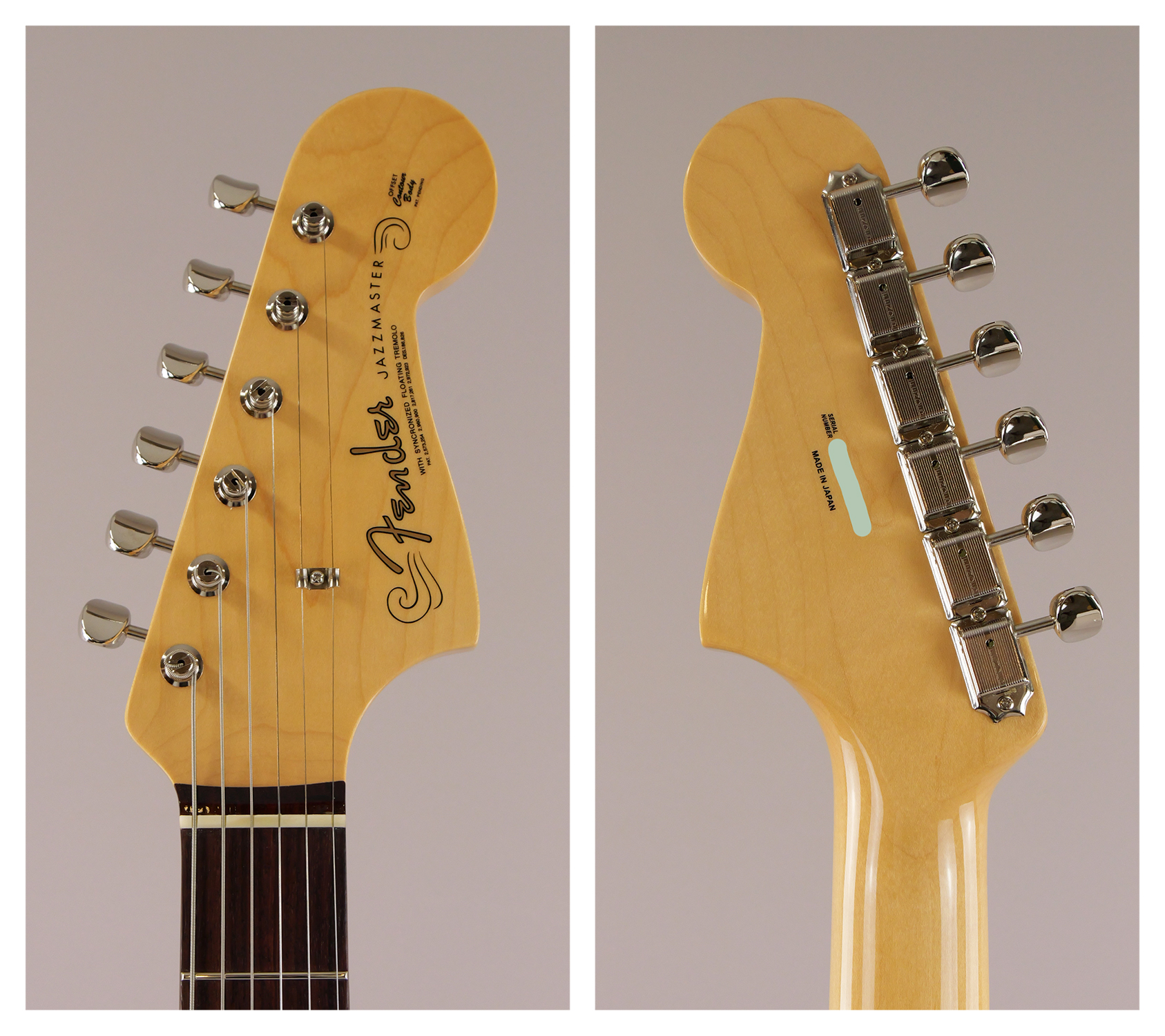 Made in Japan Heritage 60s Jazzmasteraアッシュ・ボディにラッカーフィニッシュを施し、使用年月と共に色合いに深みが増します。21本のヴィンテージスタイルフレットを装備した7.25インチラジアスのMid ʻ60s “C”シェイプメイプルネック、フローティングトレモロ付き6サドル式ヴィンテージスタイルブリッジ、そしてHeritageシリーズのために特別に選定されたピックアップなど、本製品を構成するすべての仕様はクラシックなプレイアビリティと甘いヴィンテージトーンを実現するためにこだわり抜かれています。