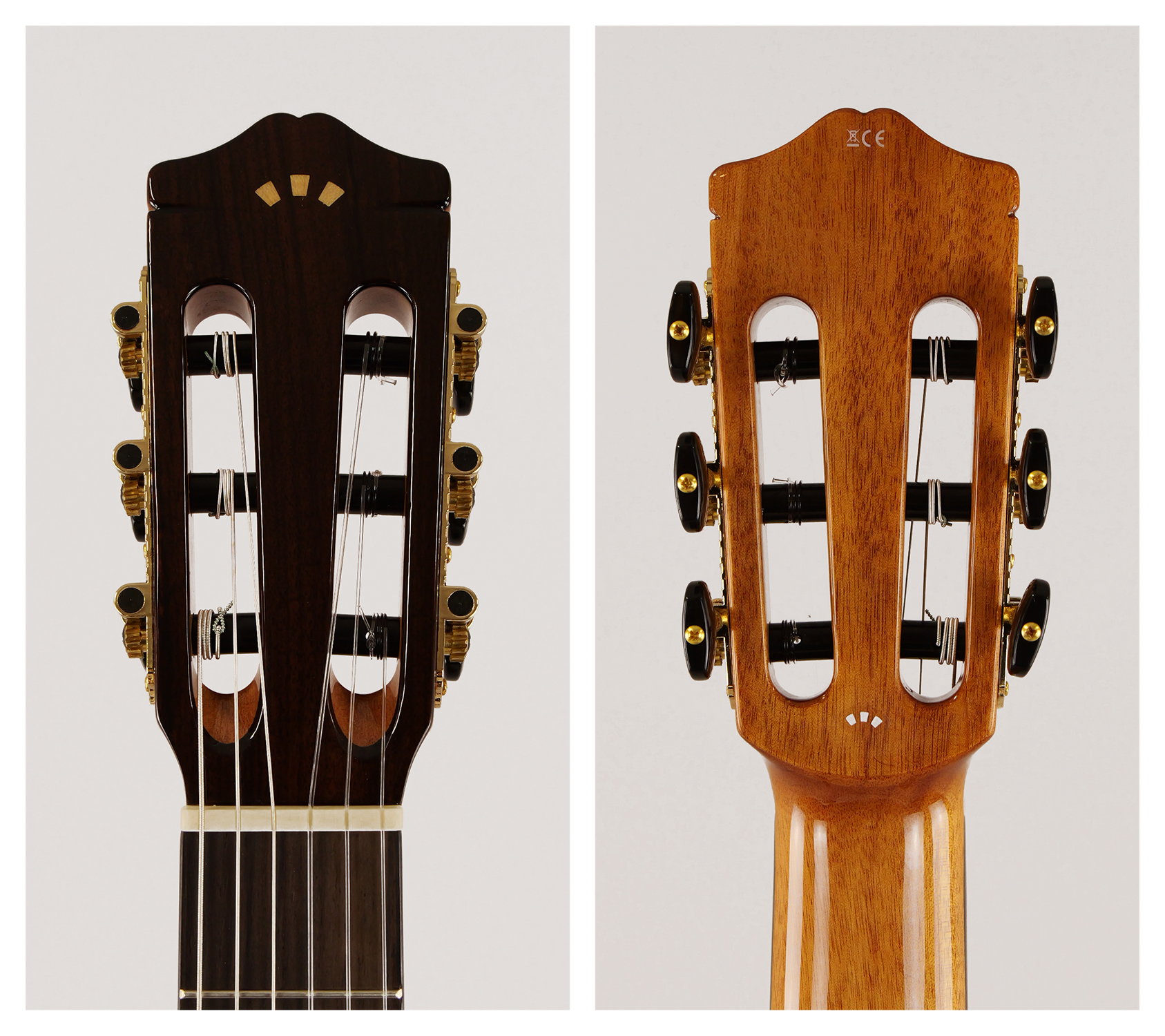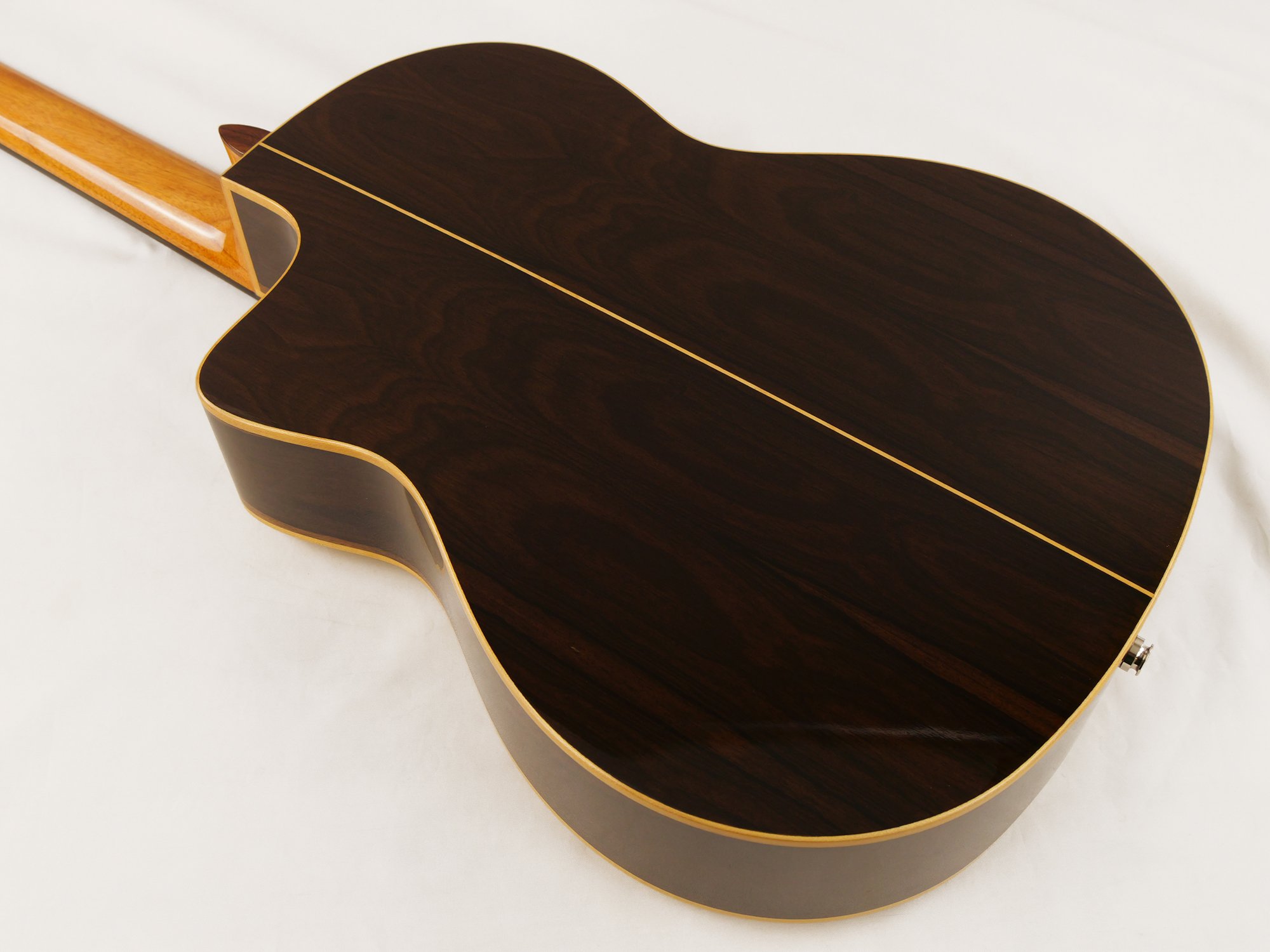 ソリッド・ヨーロピアン・スプルースをトップに、印象的な模様を持つジリコテをバック&サイドに使用した、実にステージ映えのするフラメンコギターです。ジリコテは温かみのある豊かでなめらかなサウンドを提供します。