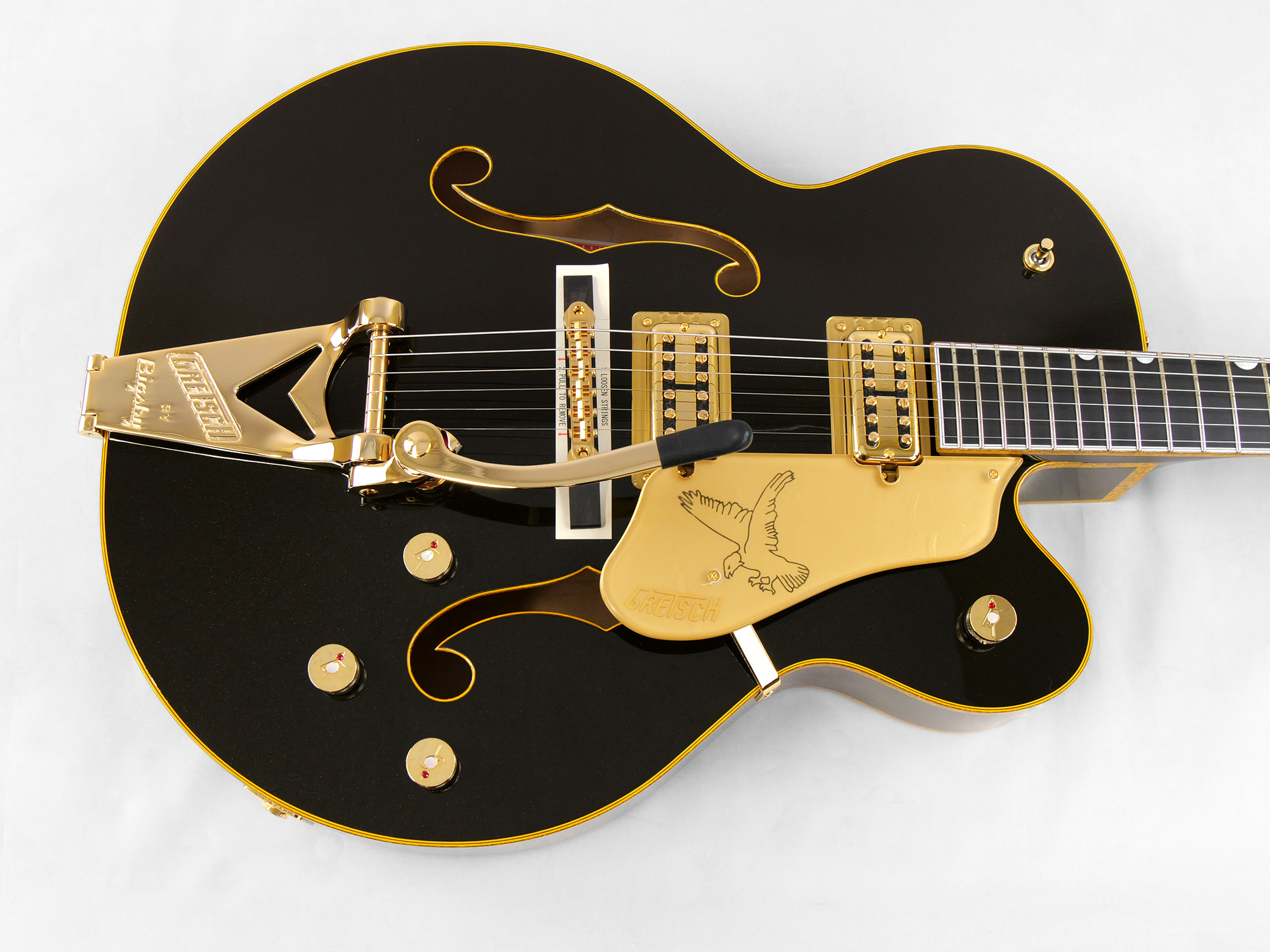 ■Pickguard: Gold Plexi with Gold Gretsch® Logo and Black Falcon™ Graphic