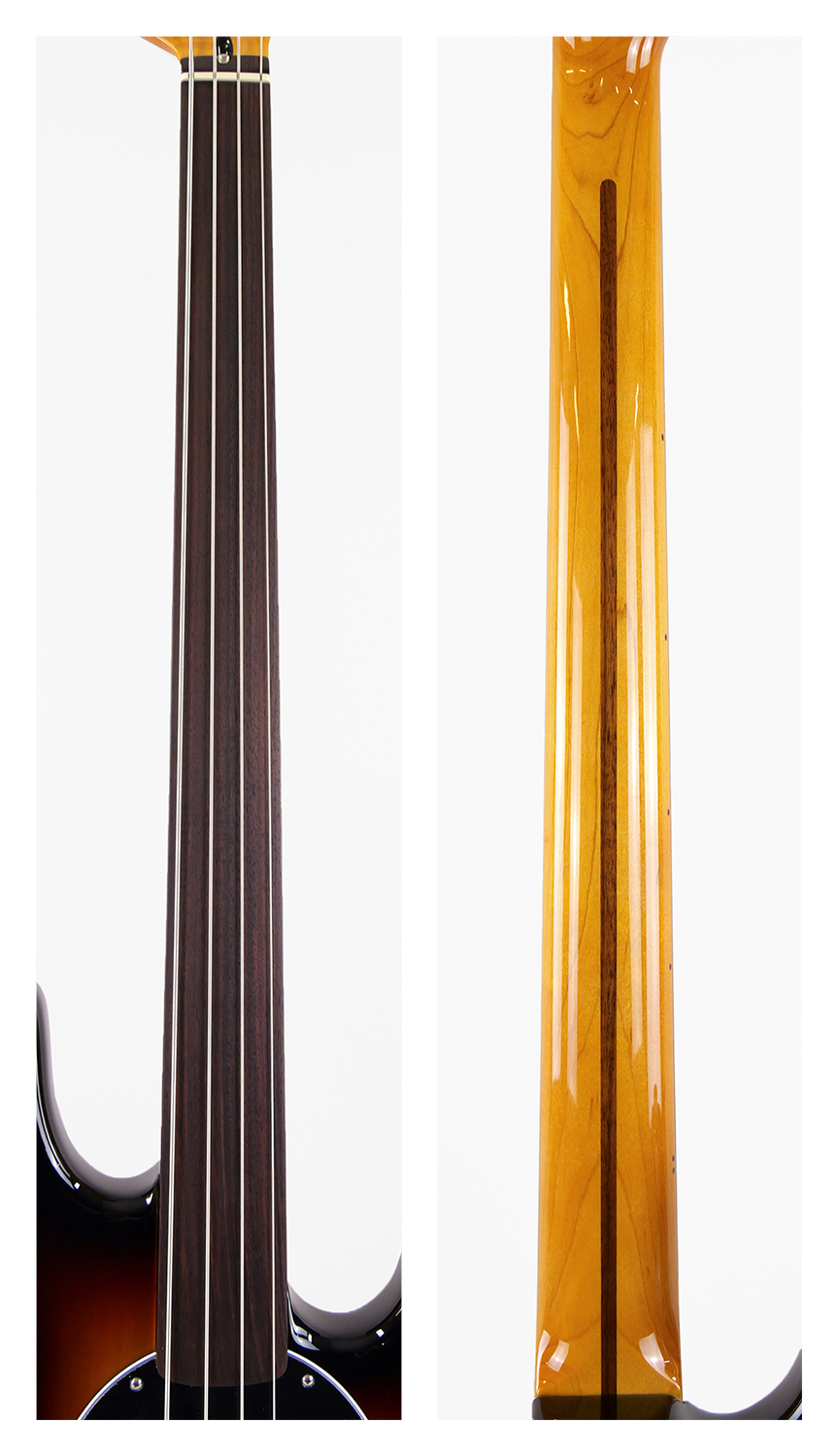 フレットレス指板は、まるでウッドベースのように豊かなサスティンと、音程を自由に操る無限の音程表現を可能にします。滑らかなヴィブラートや**音と音を滑らかにつなぐ奏法により、ロック、R&B、フュージョン、ジャズなど、あらゆるジャンルであなたのグルーヴに深みと説得力をもたらします。
