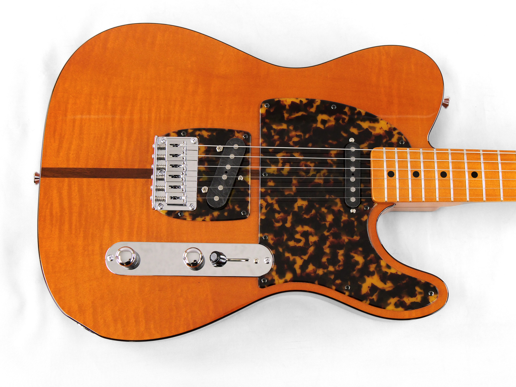 - Body Material:Flamed Maple (top & back), Ash (middle), Walnut(center stripe)