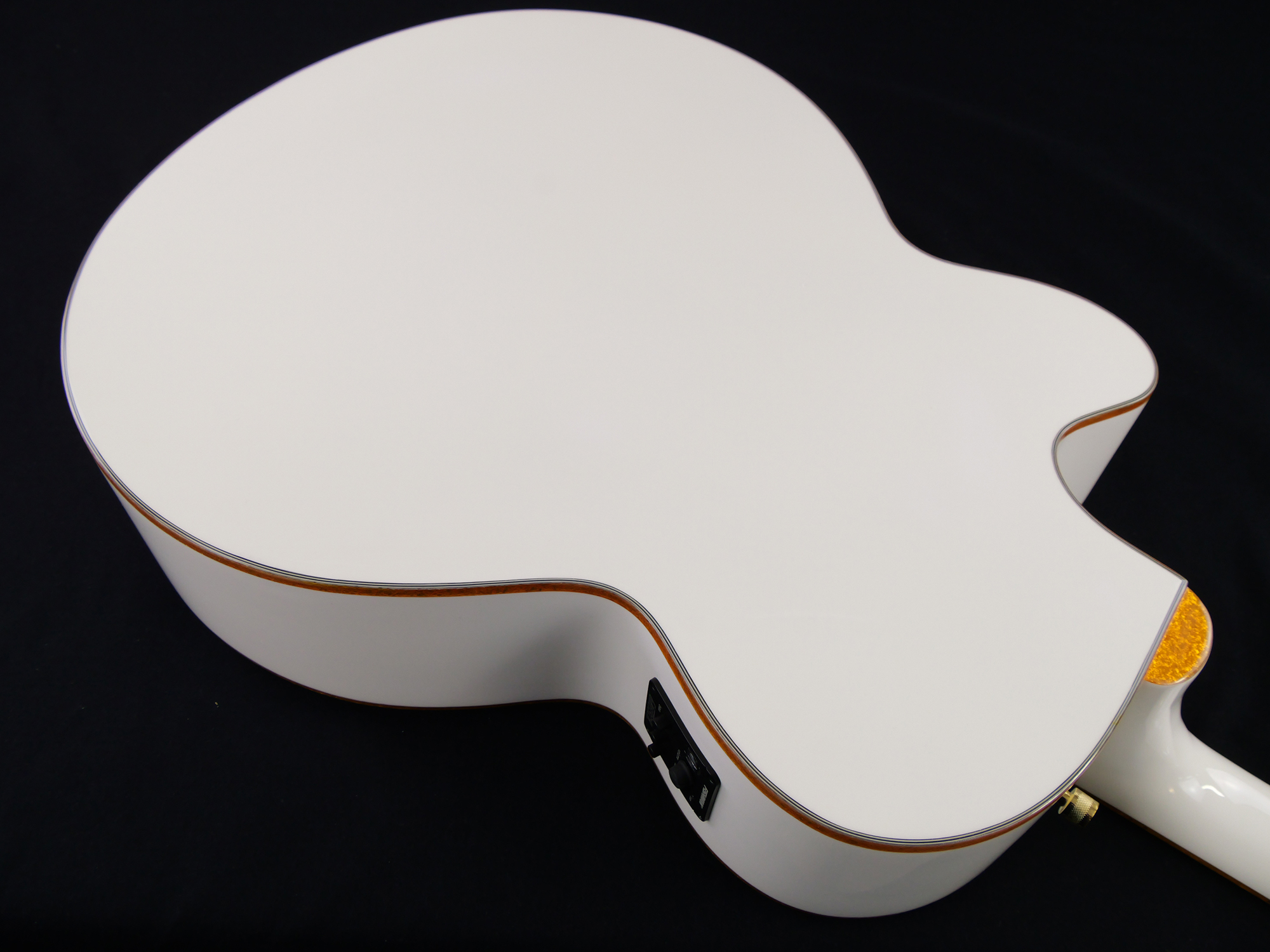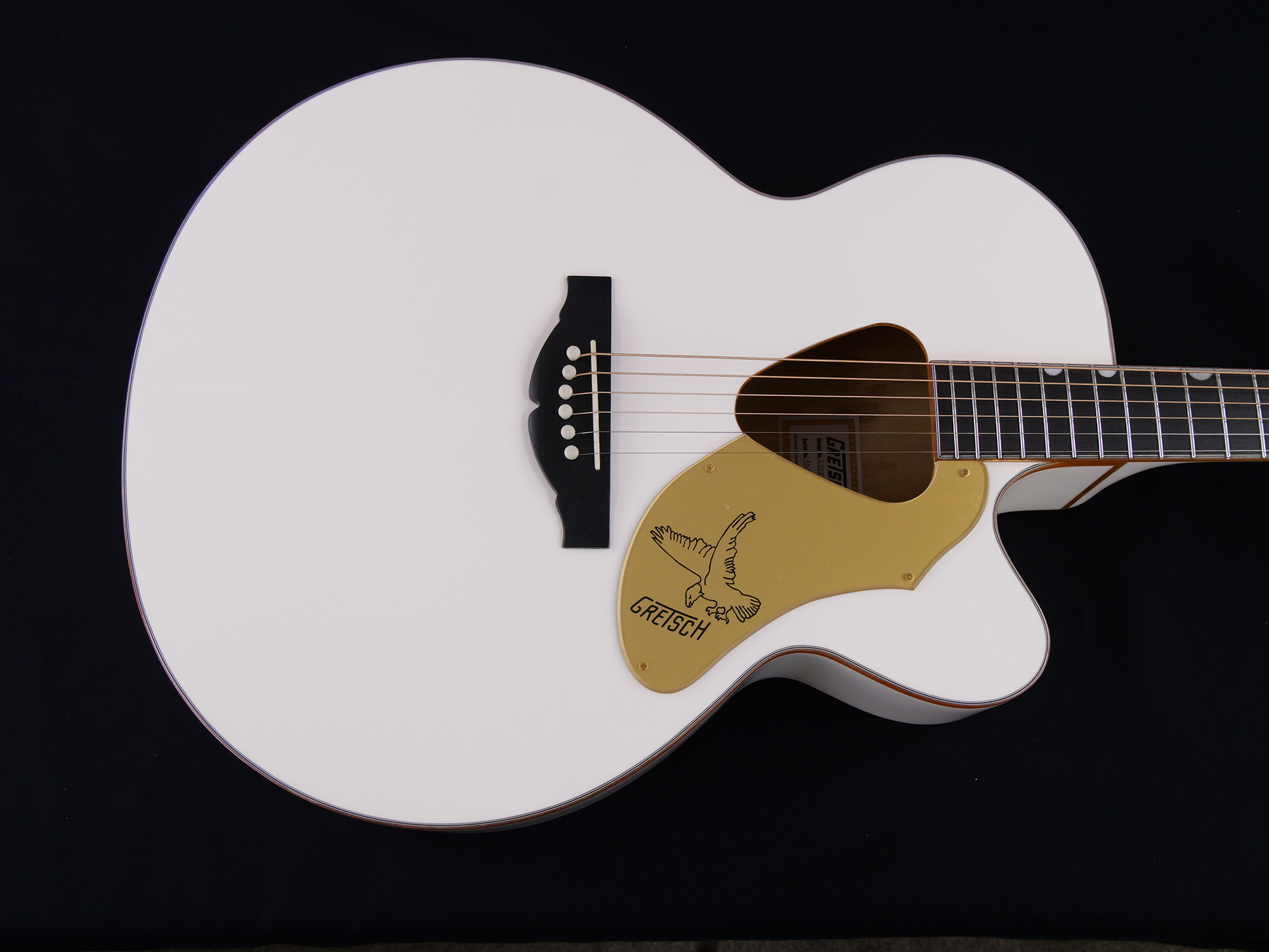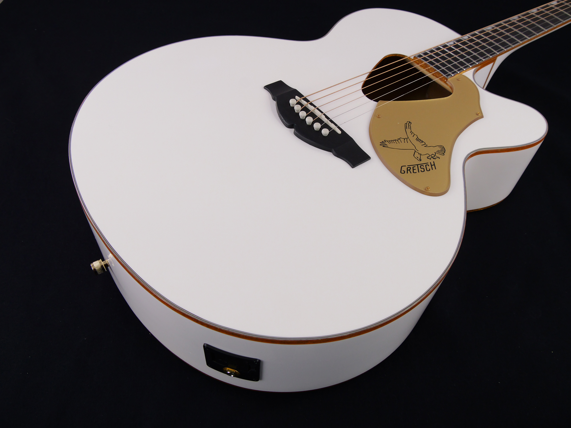 その他のプレミアムな仕様に、スキャロップドXブレイシング、クラシックなランチャータイプの三角型サウンドホールを備えた、ソリッドスプルース・ボディトップを使用。ボディ・サイドとアーチ状のボディ・バックにメイプル材を使用し、マホガニーネック、Neo-Classic™のサムネイル・インレイを装備した、21フレット仕様のローレル指板を採用。翼の付いた"Gretsch"スパークルロゴが入ったV字型ヘッドストック、ローズウッド台座付きコンペンセーテッド・ブリッジ、デラックスチューナー、金メッキされたハードウェアを採用しています。