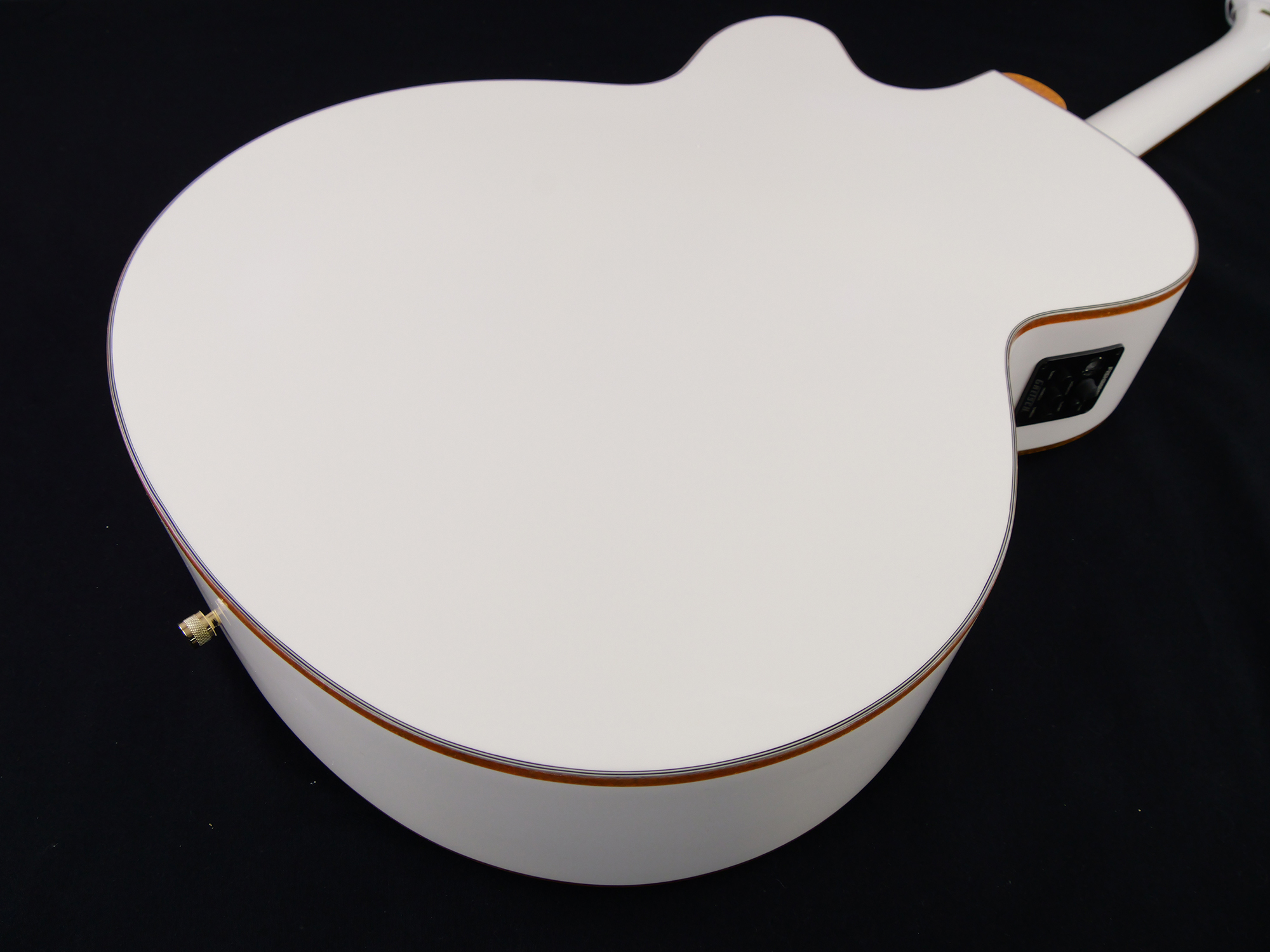 ジャンボカッタウェイを装備したボディを採用し、ボディ・トップ&バック、サウンドホール、指板、ヘッドストックに、光り輝くゴールドスパークルのバインディングが施されています。