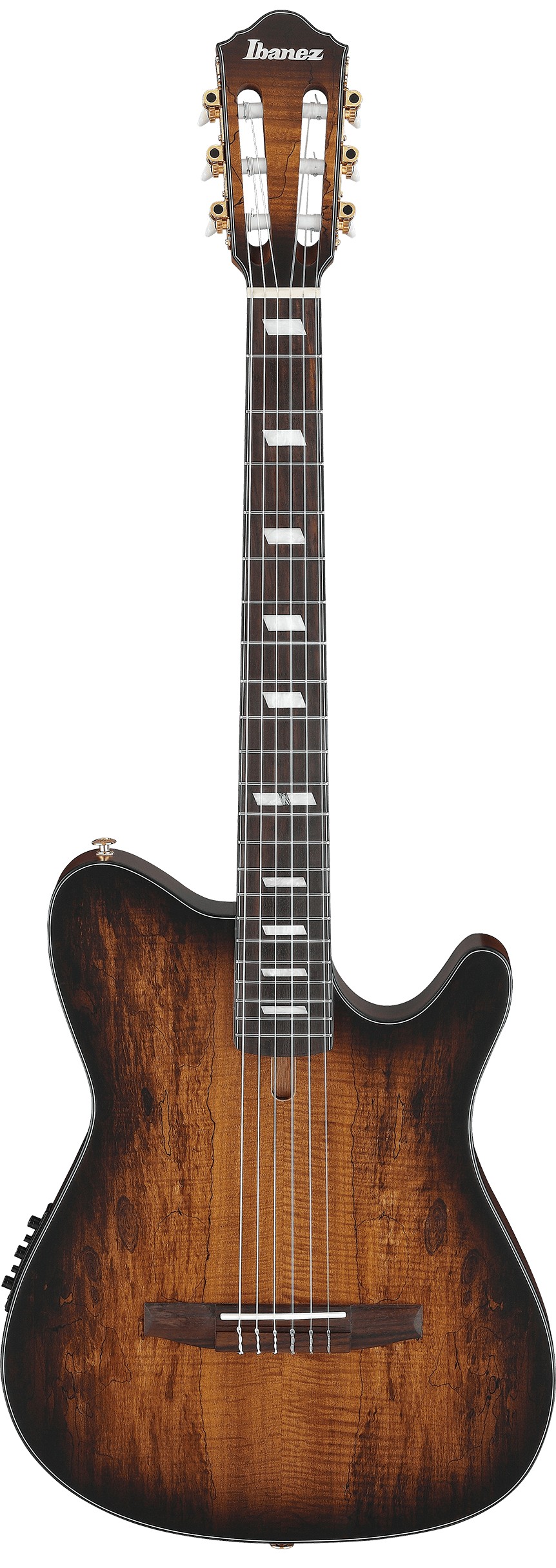 シングルカットのIbanezオリジナル”FR”シェイプを基に、クラシック・ギターでは一般的なファン・ブレーシングをトップ(表甲)に備えた厚さ約50mmのホロウ構造ボディです。