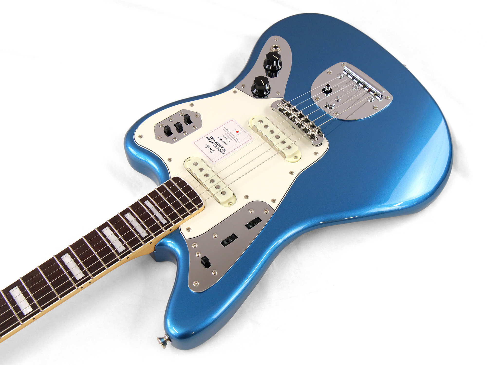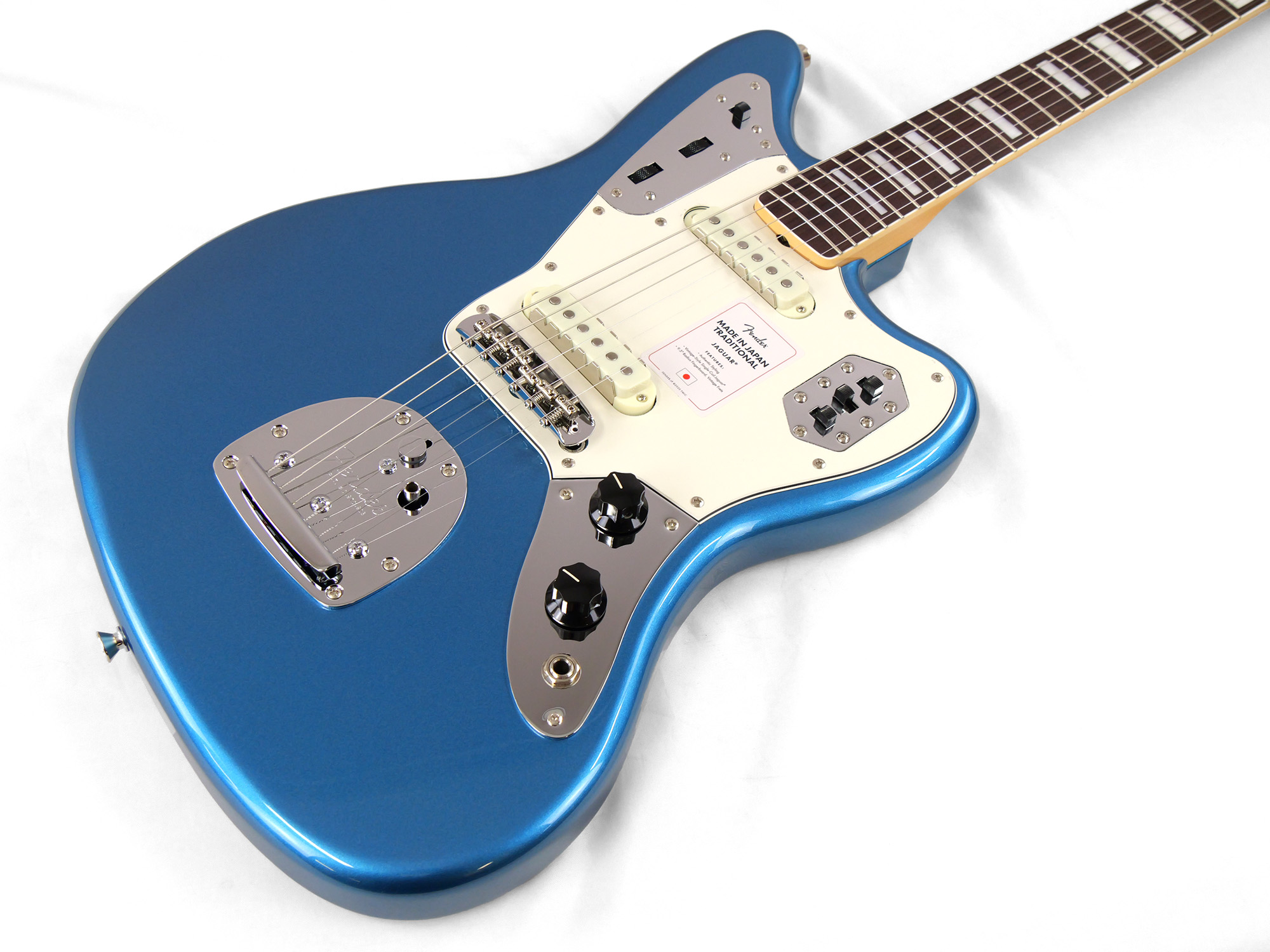 Made in Japan Traditional Late '60s Jaguar®はグロスフィニッシュのバスウッドボディに、ヴィンテージスタイルの22フレットを採用し、9.5インチラジアスの”U” シェイプメイプルネックがTraditionalシリーズならではのクラシカルな演奏製を提供します。フローティングトレモロテイルピース付きの6サドル式ヴィンテージスタイルブリッジ、そしてTraditionalシリーズのために選定されたオリジナルピックアップはリアルで音楽的なヴィンテージトーンを奏でます。 本製品は、60年代の後期から採用されていた、ネックにバインディングが施されブロックのポジションインレイを採用した製品のリイシューです。 堅実なギタークラフトマンシップと、プレイヤーのニーズに柔軟に対応する答えが、本シリーズに反映されています。