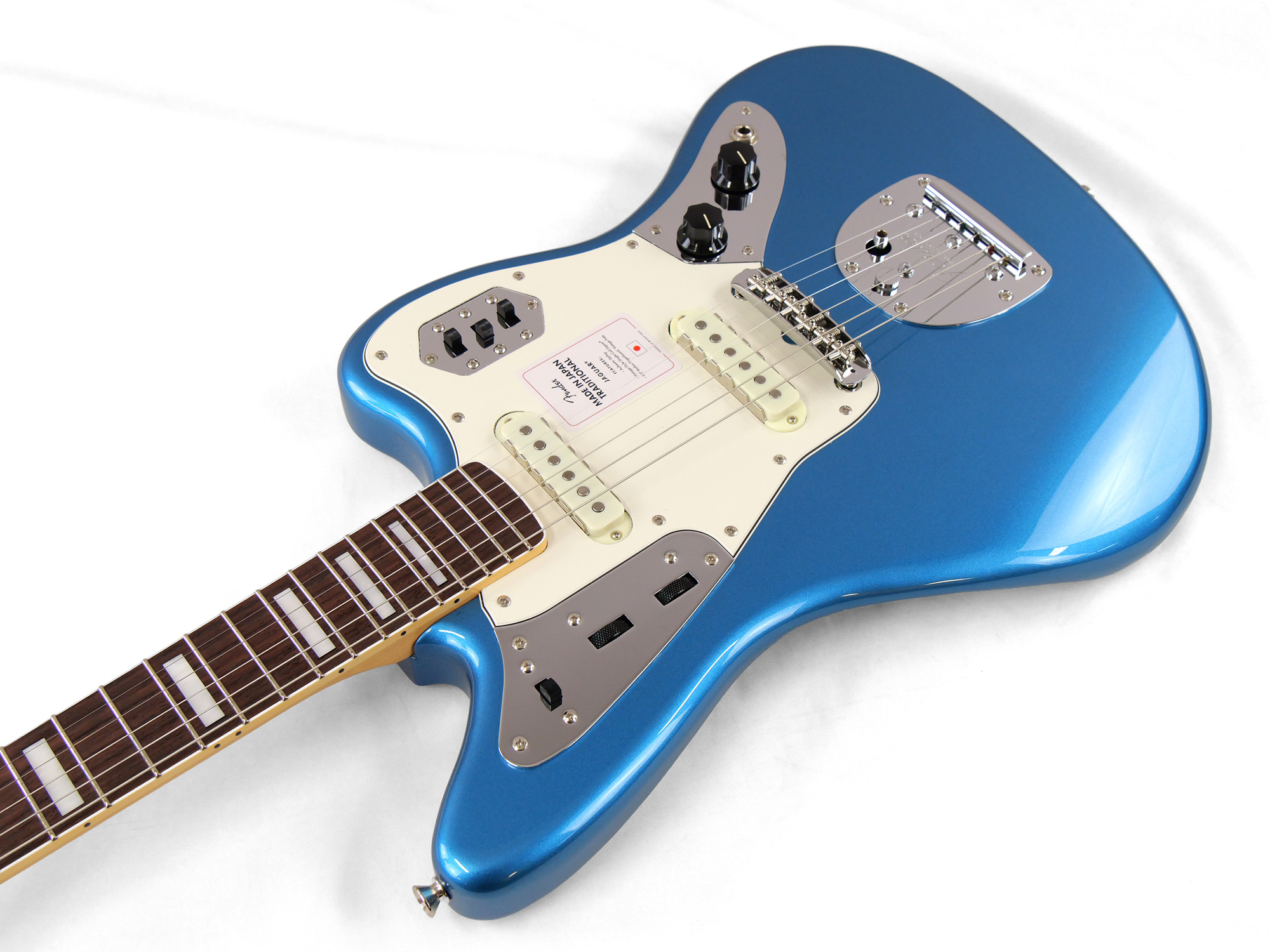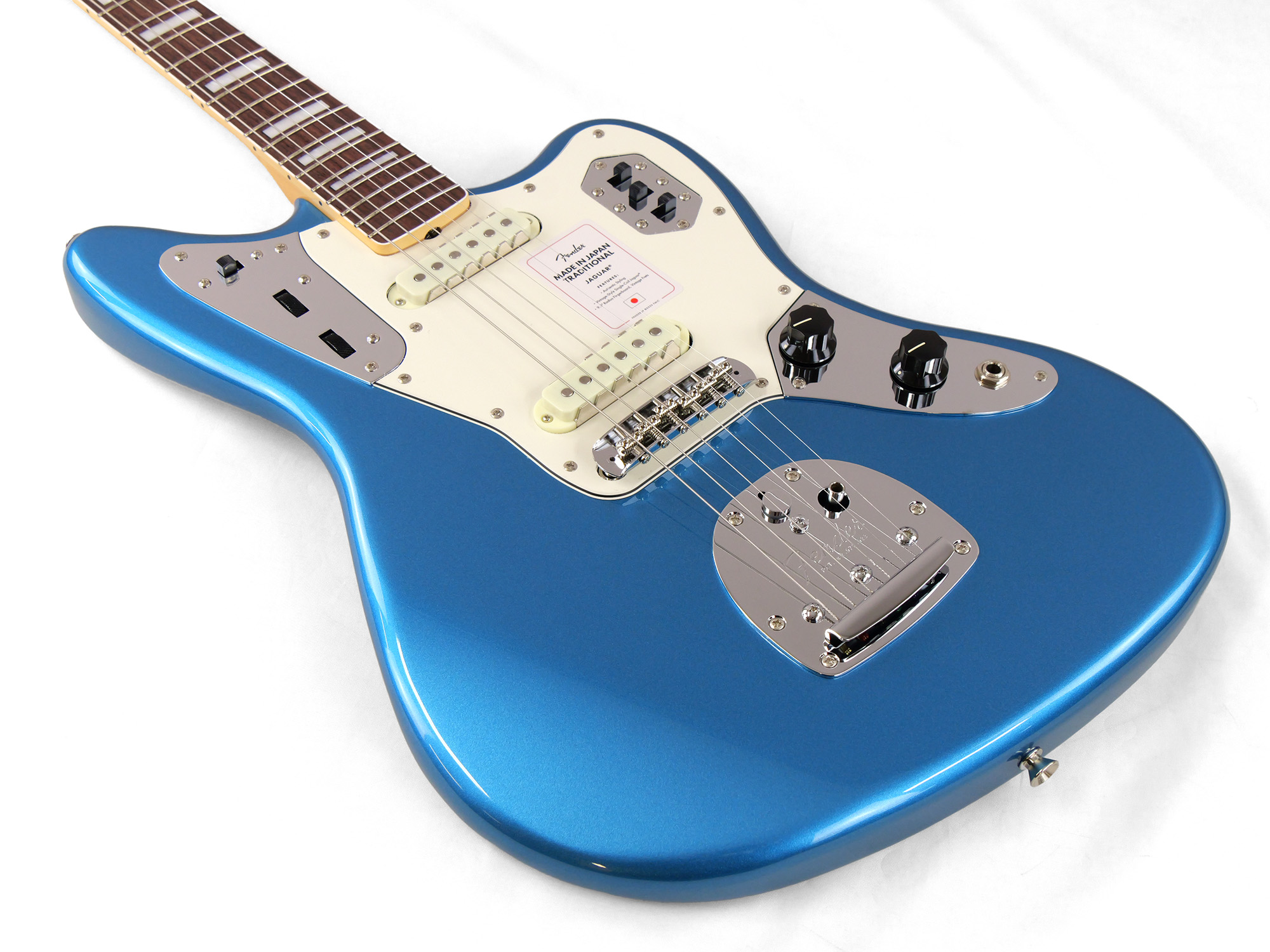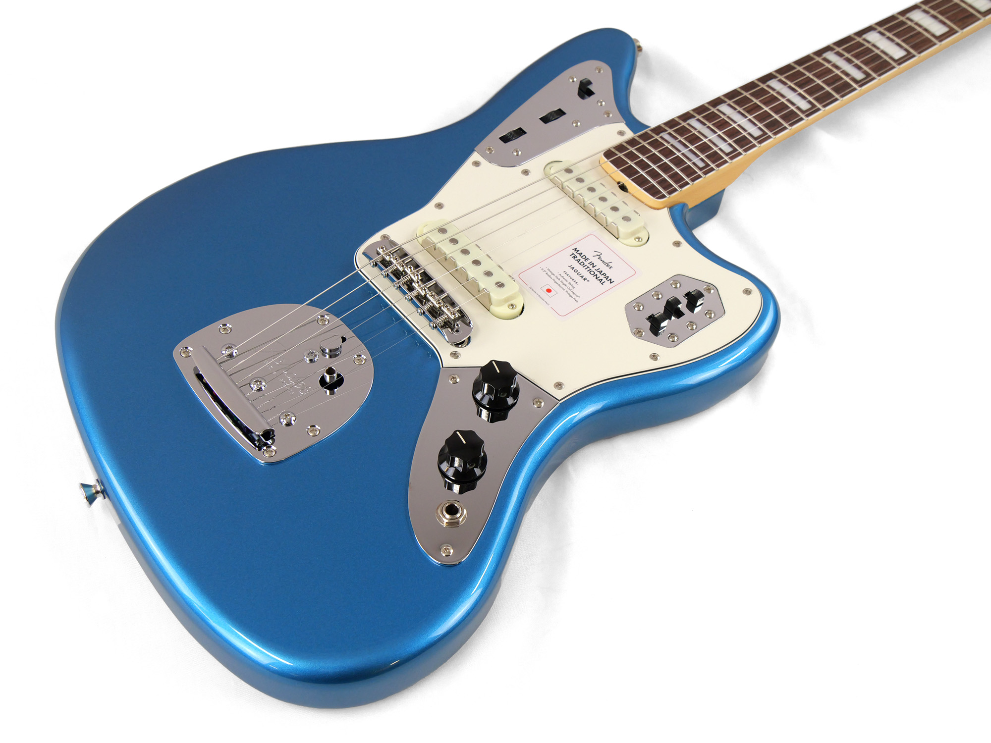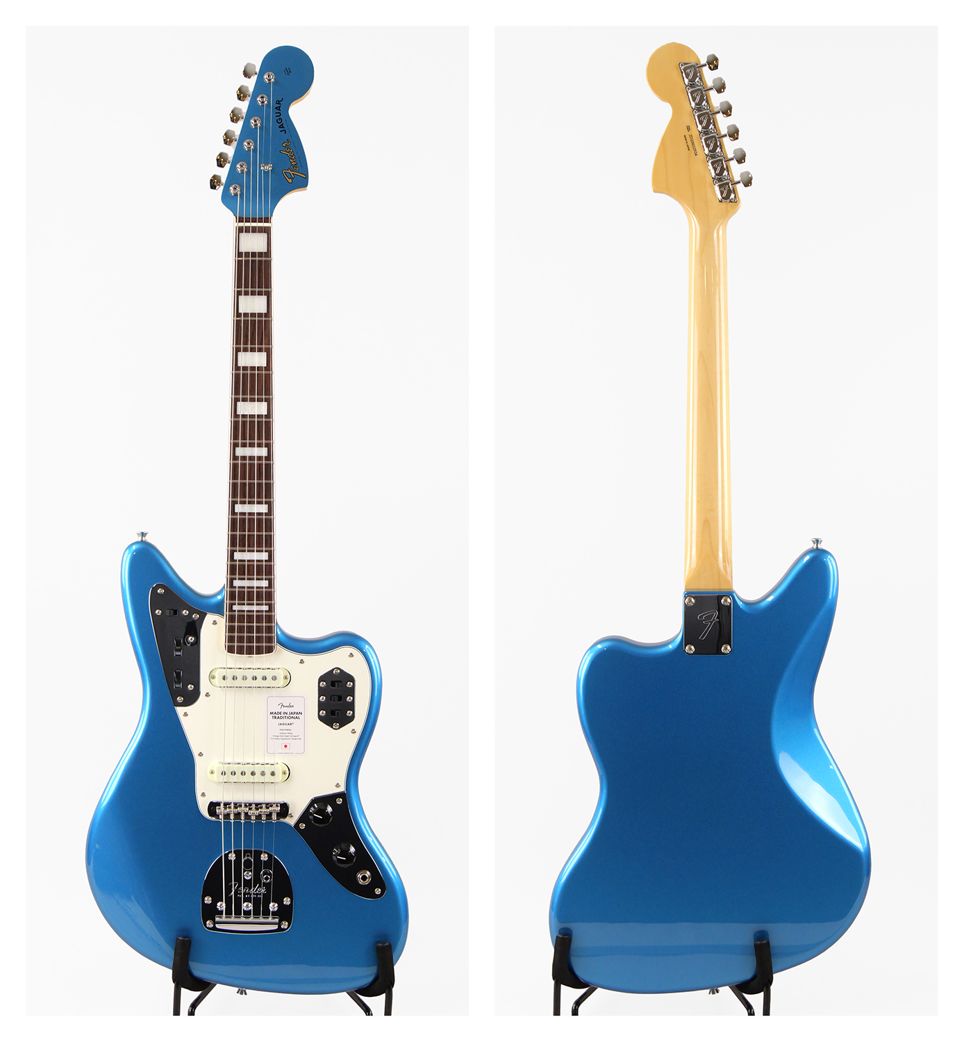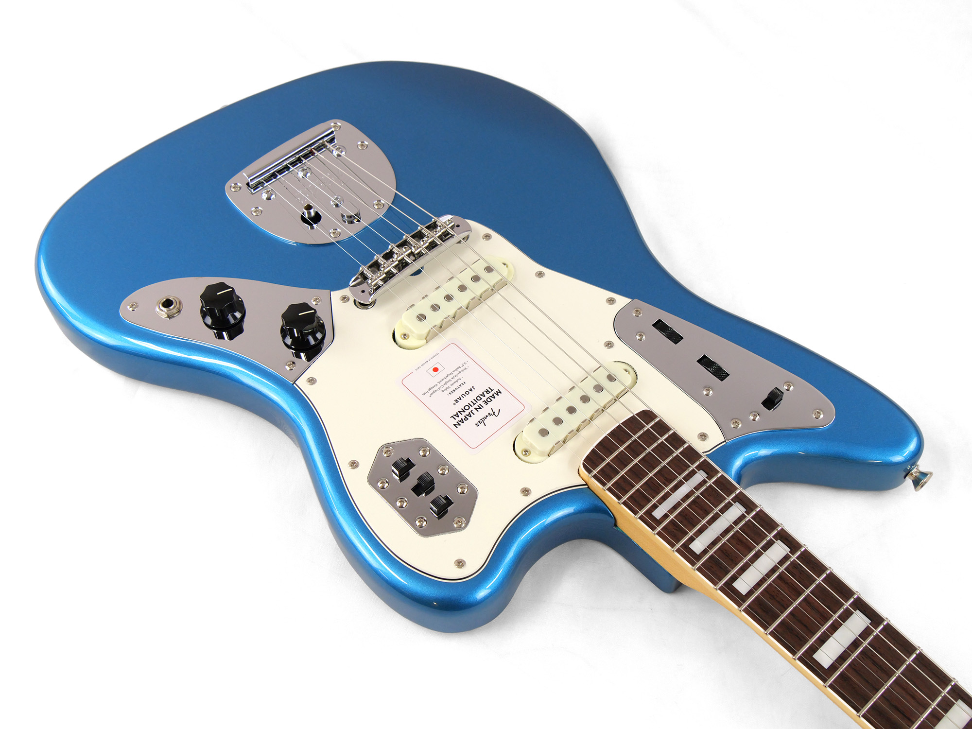 Made in Japan Traditional Late '60s Jaguar®はグロスフィニッシュのバスウッドボディに、ヴィンテージスタイルの22フレットを採用し、9.5インチラジアスの”U” シェイプメイプルネックがTraditionalシリーズならではのクラシカルな演奏製を提供します。フローティングトレモロテイルピース付きの6サドル式ヴィンテージスタイルブリッジ、そしてTraditionalシリーズのために選定されたオリジナルピックアップはリアルで音楽的なヴィンテージトーンを奏でます。 本製品は、60年代の後期から採用されていた、ネックにバインディングが施されブロックのポジションインレイを採用した製品のリイシューです。 堅実なギタークラフトマンシップと、プレイヤーのニーズに柔軟に対応する答えが、本シリーズに反映されています。