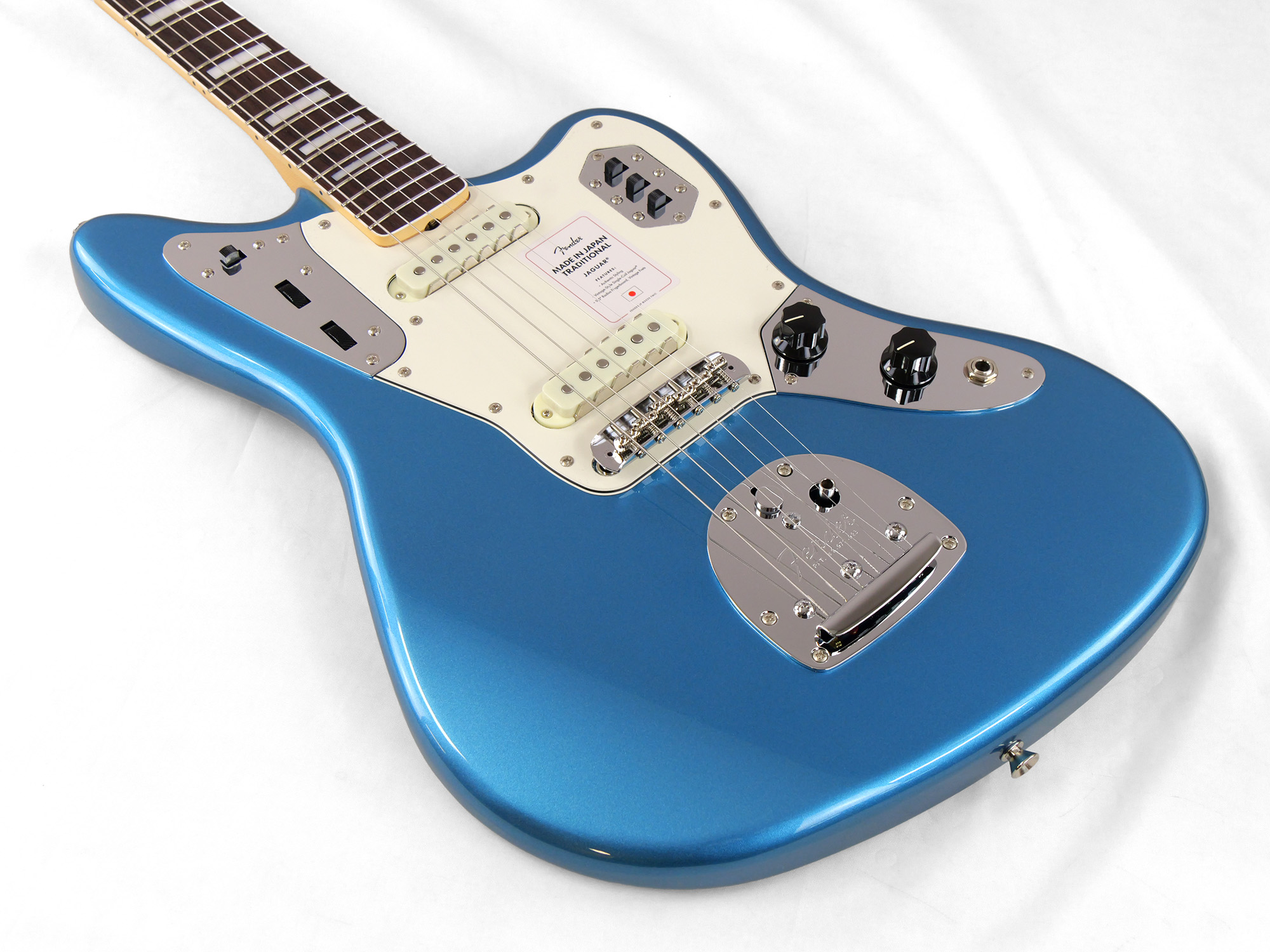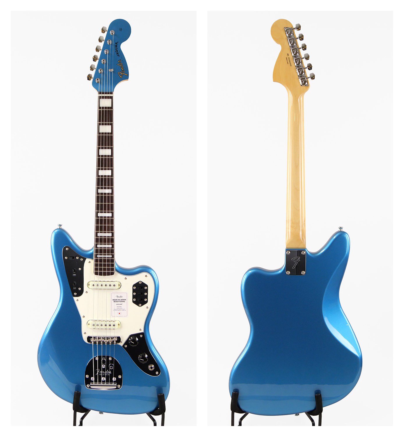 Made in Japan Traditional Late '60s Jaguar®はグロスフィニッシュのバスウッドボディに、ヴィンテージスタイルの22フレットを採用し、9.5インチラジアスの”U” シェイプメイプルネックがTraditionalシリーズならではのクラシカルな演奏製を提供します。フローティングトレモロテイルピース付きの6サドル式ヴィンテージスタイルブリッジ、そしてTraditionalシリーズのために選定されたオリジナルピックアップはリアルで音楽的なヴィンテージトーンを奏でます。 本製品は、60年代の後期から採用されていた、ネックにバインディングが施されブロックのポジションインレイを採用した製品のリイシューです。 堅実なギタークラフトマンシップと、プレイヤーのニーズに柔軟に対応する答えが、本シリーズに反映されています。