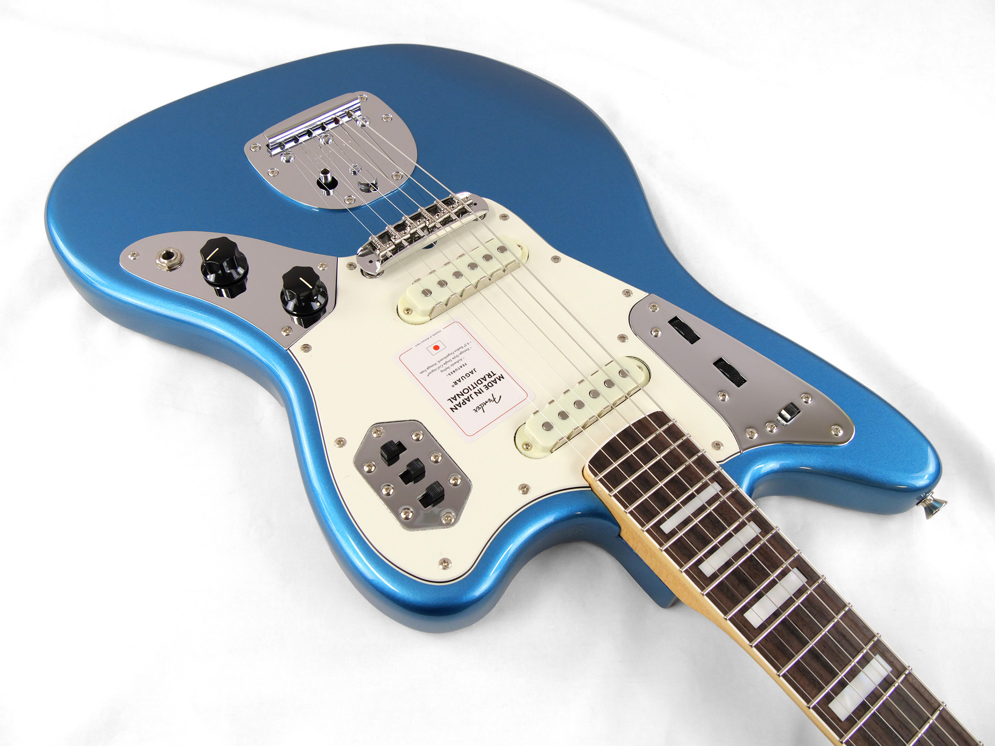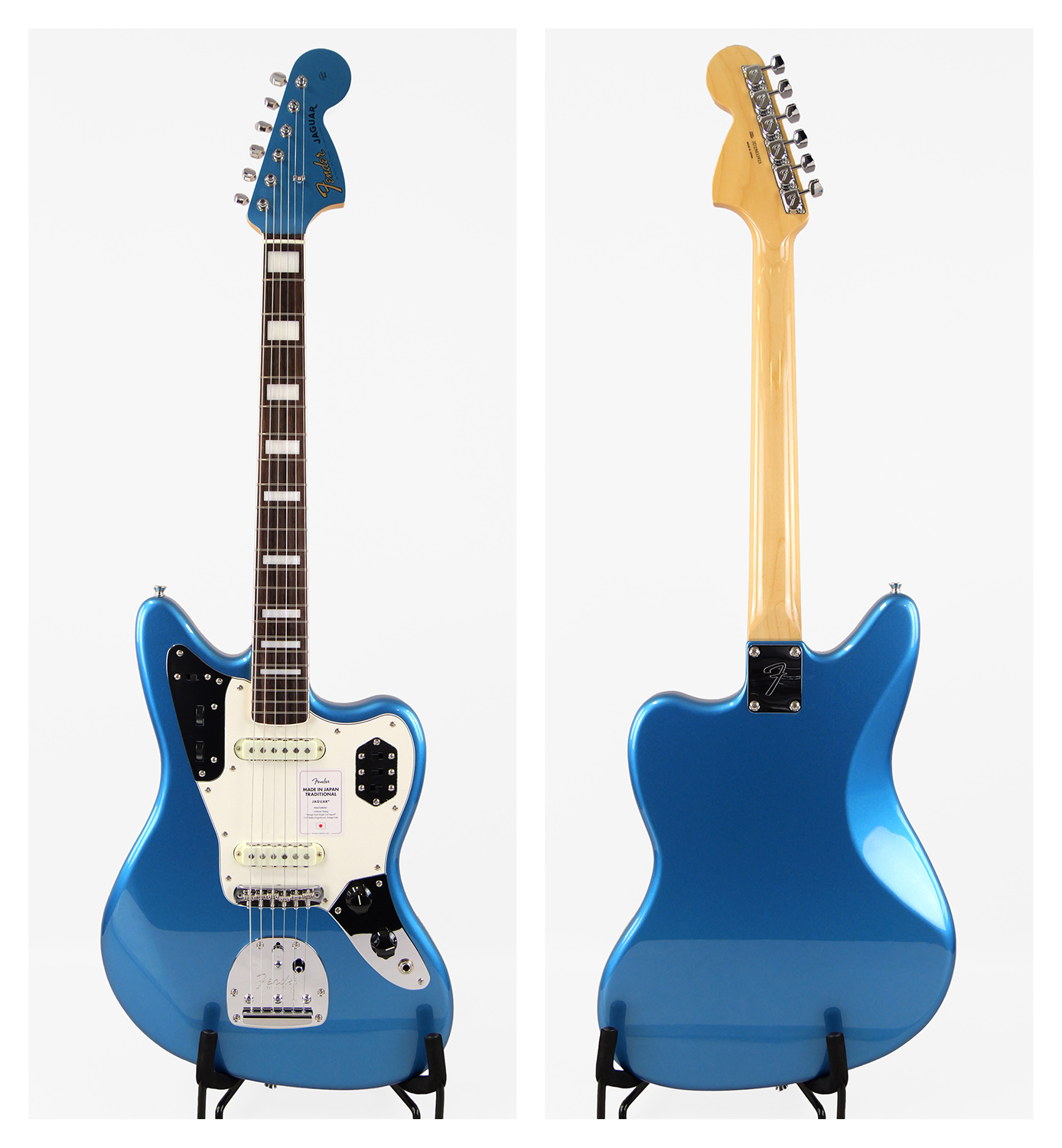 Made in Japan Traditional Late '60s Jaguar®はグロスフィニッシュのバスウッドボディに、ヴィンテージスタイルの22フレットを採用し、9.5インチラジアスの”U” シェイプメイプルネックがTraditionalシリーズならではのクラシカルな演奏製を提供します。フローティングトレモロテイルピース付きの6サドル式ヴィンテージスタイルブリッジ、そしてTraditionalシリーズのために選定されたオリジナルピックアップはリアルで音楽的なヴィンテージトーンを奏でます。 本製品は、60年代の後期から採用されていた、ネックにバインディングが施されブロックのポジションインレイを採用した製品のリイシューです。 堅実なギタークラフトマンシップと、プレイヤーのニーズに柔軟に対応する答えが、本シリーズに反映されています。
