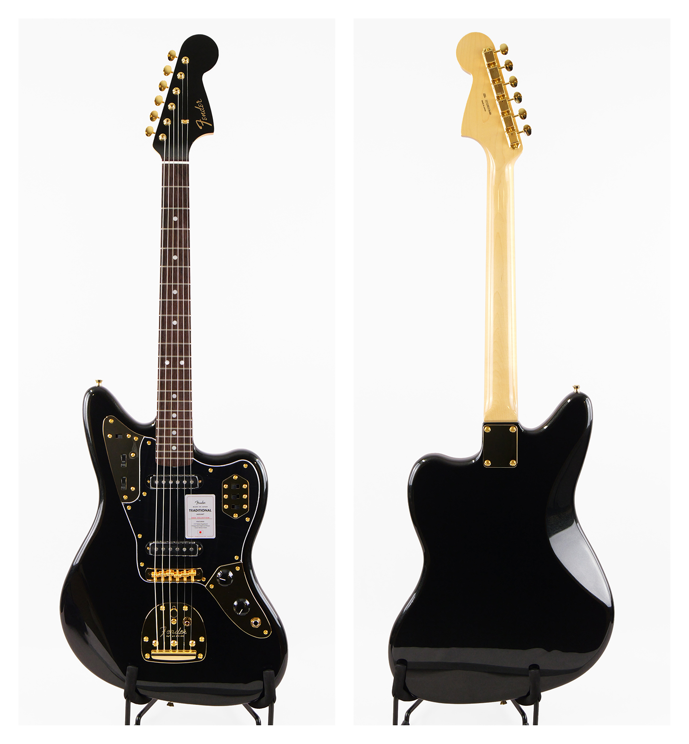 Made in Japan Traditional 2025 Collection, 60s Jaguar®は、Made in Japan Traditional 60s Jaguar®をベースに2025年限定のルックスを纏った特別なモデルです。 "Black Pearl"と"White Pearl"は、ボディとヘッドストックにこれらの製品だけの特殊なパール塗装を施しており、ゴールドに統一されたハードウェアと相まって、より一層、優雅で上品な高級感を得ることができます。 "Competition Black / 3-Color Sunburst"と"Competition 3-Color Sunburst / Aged Natural"は、従来の有彩色なコンペティションラインをあしらった製品ではなく、フェンダーの代表的なカラーである3-Color Sunburstをボディデザインに溶け込ませることで、3本ラインの中から、違った角度のフェンダーらしさを感じることができる製品です。