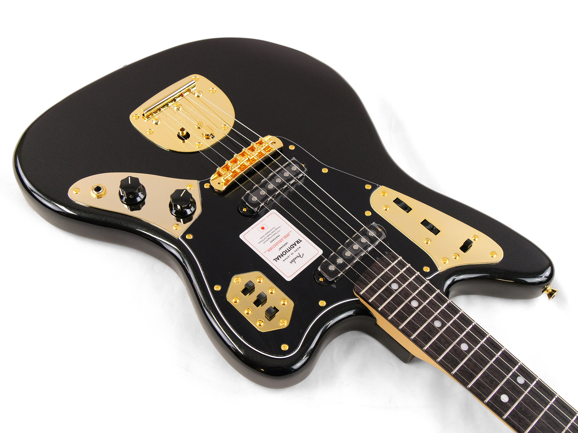 Made in Japan Traditional 2025 Collection, 60s Jaguar®は、Made in Japan Traditional 60s Jaguar®をベースに2025年限定のルックスを纏った特別なモデルです。 "Black Pearl"と"White Pearl"は、ボディとヘッドストックにこれらの製品だけの特殊なパール塗装を施しており、ゴールドに統一されたハードウェアと相まって、より一層、優雅で上品な高級感を得ることができます。 "Competition Black / 3-Color Sunburst"と"Competition 3-Color Sunburst / Aged Natural"は、従来の有彩色なコンペティションラインをあしらった製品ではなく、フェンダーの代表的なカラーである3-Color Sunburstをボディデザインに溶け込ませることで、3本ラインの中から、違った角度のフェンダーらしさを感じることができる製品です。