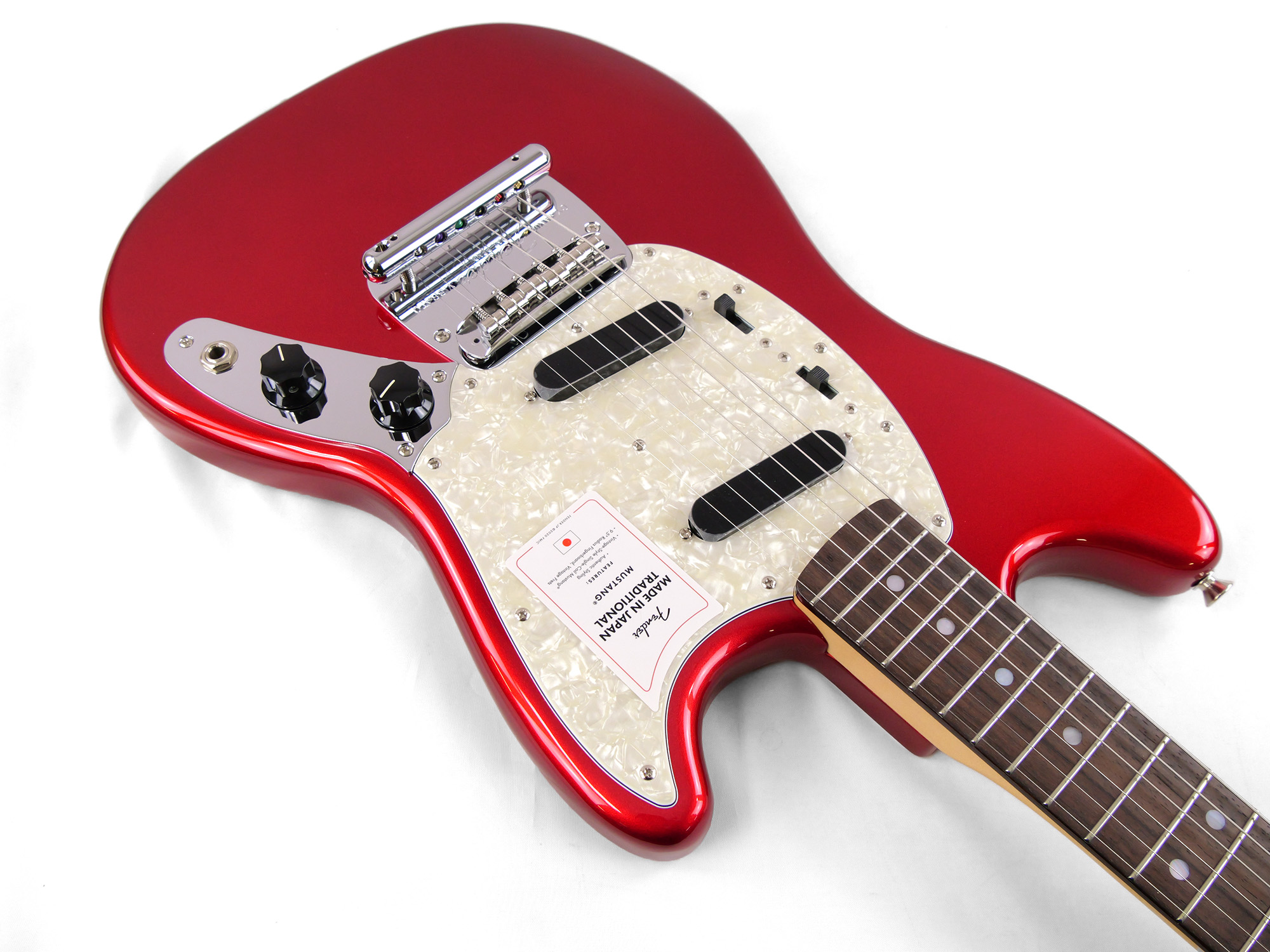 Made in Japan Traditional 70s Mustang®はグロスフィニッシュのバスウッドボディを採用。22本のヴィンテージスタイルフレットを装備した9.5インチラジアスの”U” シェイプメイプルネックがTraditionalシリーズならではのクラシカルな演奏製を提供します。ダイナミックヴィブラートテイルピース付きのフローティングブリッジ、そしてTraditionalシリーズのために選定されたオリジナルピックアップはリアルで音楽的なヴィンテージトーンを奏でます。堅実なギタークラフトマンシップと、プレイヤーのニーズに柔軟に対応する答えが、本シリーズに反映されています。