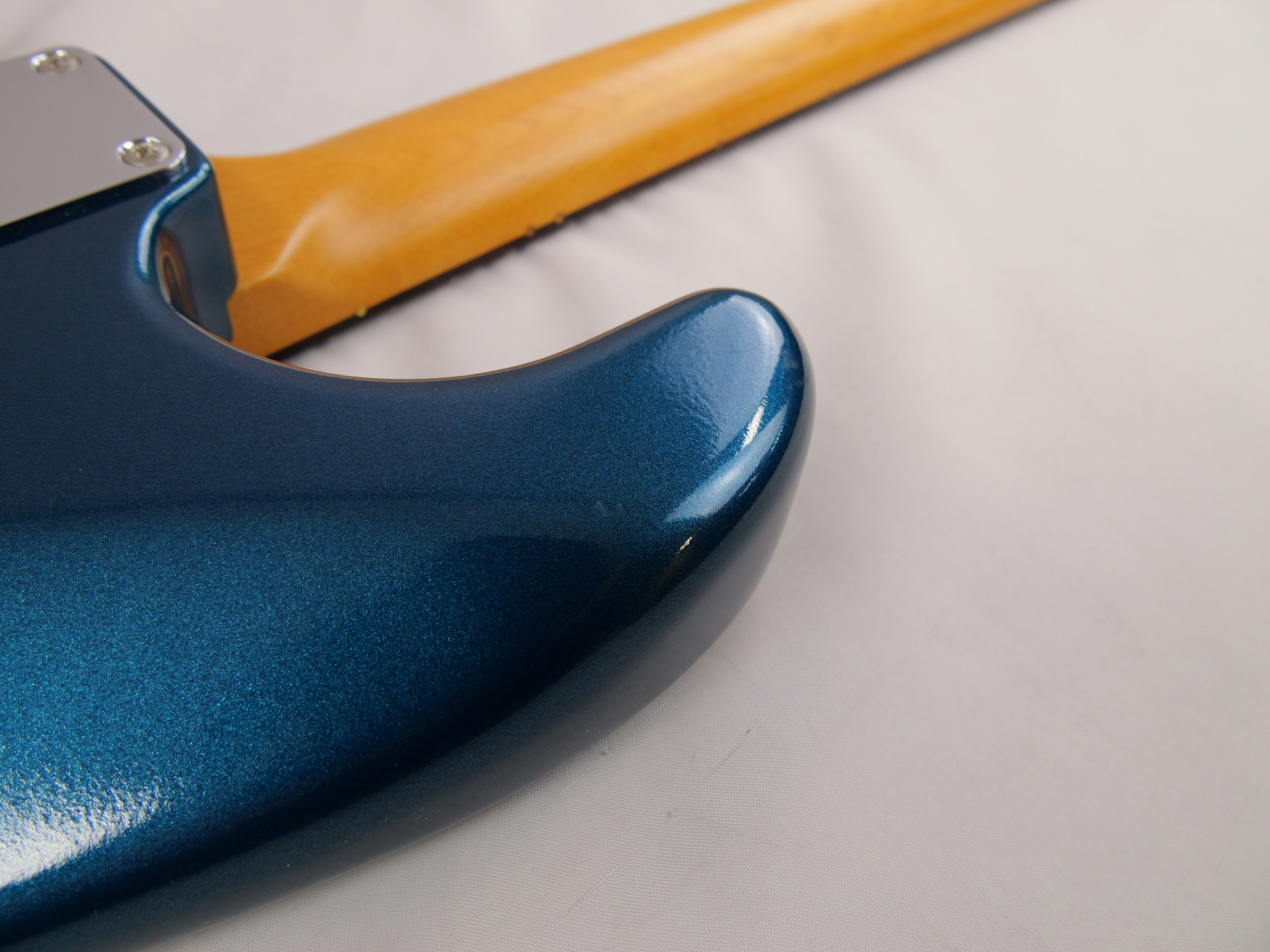 ボディーを覆う”Paradise Blue”はLake Placid Blueが経年変化で深みを増した特有の色味を再現しながらメタリックを強めたこだわりのオリジナルカラー。