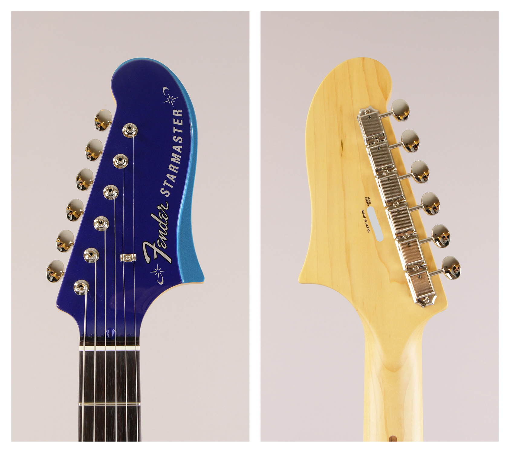 Made in Japan Limited Starmasterは、フェンダーが今まで築いてきた数々のネックシェイプとボディシェイプの中から、70年代に登場した、オフセットシェイプでセミホロウ仕様のボディが特徴なStarcaster®がもつ独特なヘッドシェイプと、昨今さらに人気が高まっているJazzmaster®のボディを融合させた、新しいデザインのモデルです。