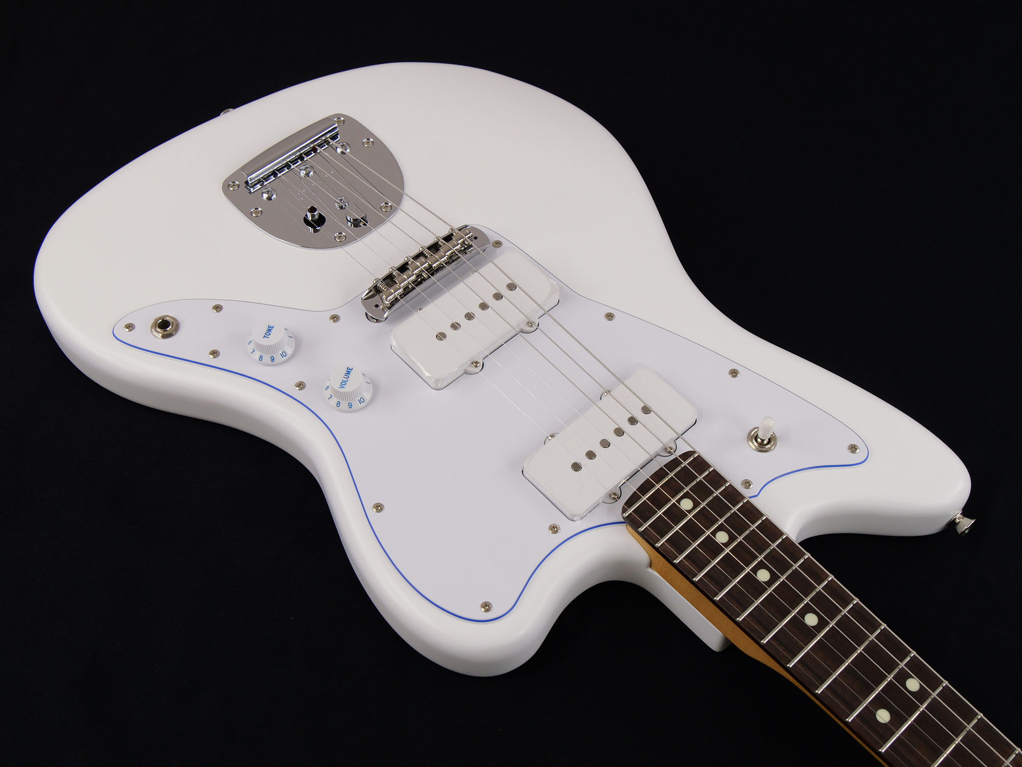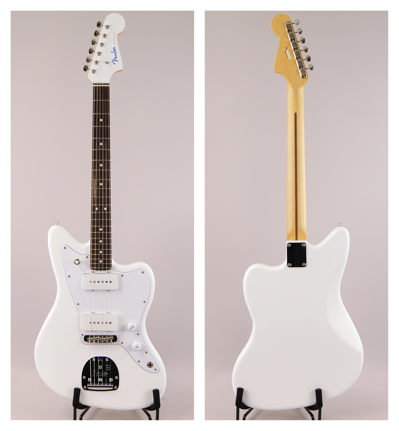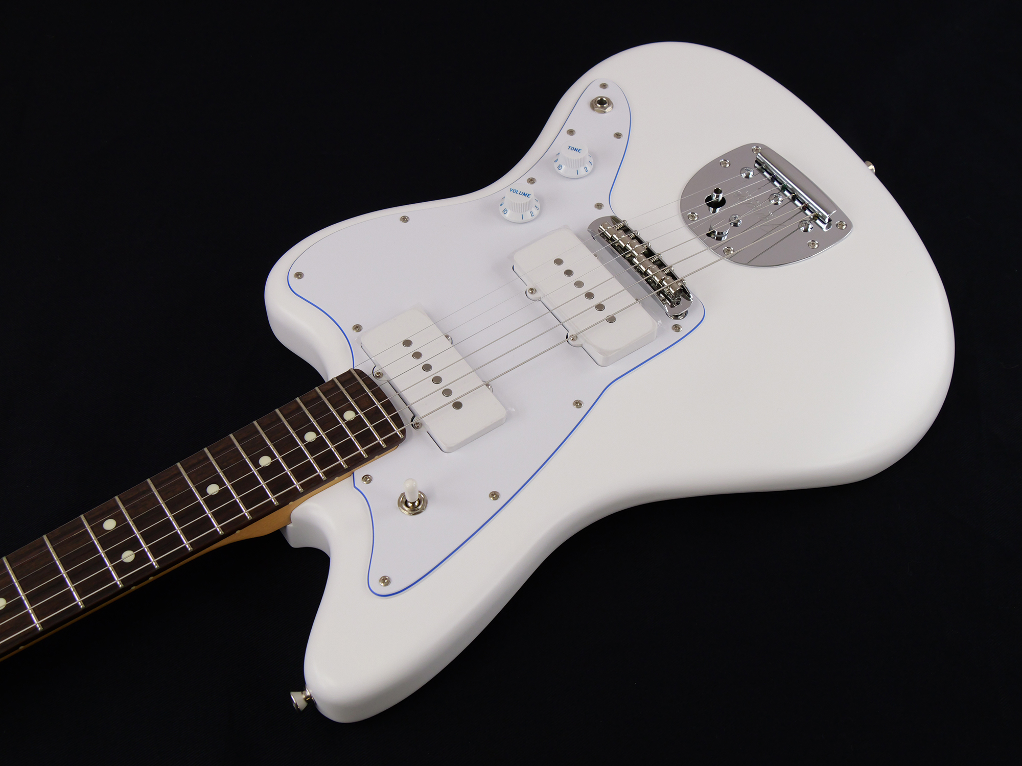 Made in Japan Limited Hybrid II Jazzmaster®, Blancは、フランス語で白を表す"Blanc"をモデル名に採用した、白と青を基調とした純白で爽やかなルックスの製品です。